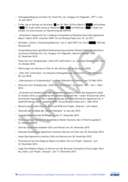 – VertragsbestätigungvonRoamFlyTravelPte.Ltd.,Singapur(imFolgenden„RFT“),vom - 10.April2019 - ,EYAudit,direktsowieanAlexander K ■ sendet,mitInformationenzurBerechnungdesEBITDA -- – E-Mail,dieimAuftragvonBurkhardL am20.März2019anMartinD B undMatthiasH – „AmendmentAgreementNo.4relatingtoAmendedandRestatedShareSaleAgreement undAndreas inKopiever- - dated1March2016”zwischenEMIF1AundWirecardSalesvom10.Juli2017 – Schreiben„Goomo:OutstandingBalances“vom4.April2017vonJanM ,COOder WirecardAG – VorstandsbeschlussbetreffendDarlehensvertragzwischenWirecardBankAG,Aschheim, BankAG,As BankAG,A undGoomoHoldingsPte.Ltd.,Singapur(imFolgenden„GoomoHoldings“)vom Holdings“)vom Holdings“)vom 22.Dezember2016 – DokumentzumAkzeptanztest„OrbitUATconfirmation“zu„SoftwareDevelopment“vom zu„SoftwareDevelopment“vom oftwareDevelopment“vom 10.Oktober2016 30.Juni2016 G – RechnungenvonHermesanOrbitfürdenZeitraumJanuarbisAugust2016 mJanuarbisAugust mJanuarbisAugust2016 – „OrbitUATconfirmation“fürerbrachteHosting-Services,datiertmit31.März2016und ing-Services,datiertmit31.März2016un vices,datiertmit31.März2016un n – „MemorandumofUnderstanding“zwischenSkilworthundHermesvom13.März2016 wischenSkilworthundHermesvom wischenSkilworthundHermesvom13.M – 2016 M – DokumentzumAkzeptanztest„OrbitUATconfirmation“zu„Brand–URL“vom1.März OrbitUATconfirmation“zu„Brand–URL UATconfirmation“zu„Brand–URL ........,. „AmendedandrestatedsharesaleAgreementrelatingtoaShareSaleAgreementdated sharesaleAgreementrelatingtoaShare sharesaleAgreementrelatingtoaShare 27October2015,asamendedbyAmendmentAgreementNo.1dated16December2015, amendedbyAmendmentAgreeme amendedbyAmendmentAgreementNo. AmendmentAgreementNo.2dated28January2016andAmendmentAgreementNo.3 ementNo.2dated28January2016and ementNo.2dated28January2016andA -• dated29February2016”zwischenEMIF1AundWirecardSalesvom1.März2016 uary2016”zwischenEMIF1AundWireca ary2016”zwischenEMIF1AundWireca KP – BerechnungdesEarn-Outsfür2015und2016zumProjekt„Peacock”,nichtdatiert ngdesEarn-Outsfür2015und2016zum desEarn-Outsfür2015 -- – ÜbersichtderUmsätzeder„MasterStockists“fürdasJahr2015 sichtderUmsätzeder„MasterStockists“ rUmsätzeder„Master – FinancialStatementvonGIPhilippineszum FinancialStatementvonGIPhilippineszum31.Dezember2015 inancialStatementvonGIPhilippineszu – RechnungenvonHermesanverschiedeneMasterStockists,allemitRechnungsdatum chnungenvonHermesanversch chnungenvonHermesanverschie 31.Dezember2015 ezember2 ezember2015 – ServicesAgreementzwischenOrbitundHermesvom25.November2015 greeme greementzwischen – SoftwareDevelopmentAgreementzwischenHermesundOrbitvom25.November2015 opmen opmentA – AssetSaleAgreementzwischenOrbitundHermesvom30.November2015 – FinancialandTaxDueDiligenceReportvonBakerTillyzumProjekt„Peacock”vom 24.November2015 – LegalDueDiligenceReportzuHermesvonderBusinessTransactionsGroupLegal,Mum- bai,Indien,zumProjekt„Peacock”vom17.November2015 15|WirecardAG|InformationsbandzurunabhängigenSonderuntersuchung2020–strengvertraulich|10.020925-16039304