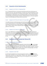 3.3.3 Gespräche mit dem Abschlussprüfer 3.3.3.1 GesprächmitEYFISam12.Dezember2019 Am12.Dezember2019fandinAnwesenheitdesRechtsvertretersdesAufsichtsratesein GesprächmitEYFISinderenRäumlichkeiteninEschbornstatt.ZieldesGesprächeswardie GewinnungeinesVerständnisseszumHintergrunddesProjektes„Ring“sowiedessenRah- menbedingungen.InsbesonderewurdendieAuftragsvergabeanEYFISsowiederUmfang derSonderuntersuchungthematisiert.DanebenwurdengrundsätzlicheUntersuchungshand- lungenunddieBeendigungderSonderuntersuchungerörtert. 3.3.3.2 GesprächmitEYFISundEYAuditam15.Januar2020 - IndenRäumlichkeitendesRechtsberatersdesAufsichtsratesderWirecardAG(CliffordChan- sderWirecardAG(CliffordChan- WirecardAG(CliffordChan- G ceLLP,Frankfurt)fandam15.Januar2020inAnwesenheitdesRechtsberatersdesAuf- eitdesRechtsberatersdesAuf- echtsberatersdes l llll sichtsratesderWirecardAGeinzweitesGesprächzuProjekt„Ring“mitEYFISundEYAudit Projekt„Ring“mitEYFISundEYAudit 1111111.. statt.ImRahmendieseszweitenGesprächesgabEYFISweitereInformationenzuderdurch- geführtenUntersuchung. 3.3.3.3 EYFISweitereInformationenzuderdurch FISweitereInformationenzuderdurc GesprächmitEYAuditam21.Januar2020 1.Januar2 1.Januar2020 M Am21.Januar2020fandeinweiteresGesprächmitEYAuditindenRäumlichkeitender teresGesprächmitEYAuditindenRäum prächmitEYAuditinden WirecardAGunterAnwesenheitdesRechtsberatersdesAufsichtsrates(CliffordChanceLLP, eitdesRechtsberatersdesAufsichtsra eitdesRechtsberatersdesAufsichtsrates Frankfurt)sowieVertreternderWirecardAGstatt.EYAuditerläuterteKPMGdiedurchgeführ- nderWirecardAGstatt.EYAuditerläutert derWirecardAGstatt.EYAuditerläuter tenPrüfungshandlungenimRahmenderJahresabschlussprüfungzudenObservationsvon EYFIS. nimRahmenderJahresabschlusspr nimRahmenderJahresabschlussprüfung KP 3.3.4 3.3.4.1 4.1 • Gespräche präche mit dem V --- Vorstand der Wirecard AG GesprächmitdemehemaligenCFO GesprächmitdemehemaligenCF prächmitdemehemaligenC Am22.Januar2020fandeinInformationsgesprächzwischenBurkhardL anuar2020fandeinInforma anuar2020fandeinInformat tt.Inhalt tt.InhaltdesGes ,demdamaligen CFOundaktuell„SeniorAdvisortotheExecutiveBoard“desVorstandesderWirecardAG, tuell„S tuell„SeniorAdvisorto undKPMGstatt.InhaltdesGesprächeswarenderAblaufdesProjektes„Peacock“unddiein RedestehendeKaufpreisermittlung.DarüberhinauswurdedieAuftragsvergabe,derAblauf ufpreise ufpreiserm unddieBeendigungdesProjektes„Ring“thematisiert. des des ■ 3.3.4.2 GesprächemitdemCOO Am28.November2019fandeinInformationsgesprächzwischenJanM ,COOder WirecardAG,undKPMGzumThemaProject„Peacock“statt.InsbesonderederErwerbdes „Payment-Geschäfts“vonderGIRetailGroupunddieHintergründezumKaufwurdenim RahmendesGesprächeserläutert. - 17|WirecardAG|InformationsbandzurunabhängigenSonderuntersuchung2020–strengvertraulich|10.020925-16039304