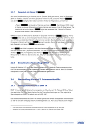 - Am4.Februar2020fandeinzweitesInformationsgesprächzwischenJanM und KPMGstatt.ZieldesGesprächeswardieGewinnungdesVerständnisseszurChronologiedes Projektes„Ring“sowiedessenRahmenbedingungen.InsbesonderewurdendieAuftrags- vergabe,derAblaufunddieBeendigungdesProjektes„Ring“thematisiert. 3.3.5 Gespräche mit Mitarbeitern der Wirecard AG 3.3.5.1 GesprächemitdemHeadofAccounting Am24.Januar2020gabStephan •• derWirecar erWireca E ,HeadofAccountingderWirecardAG,KPMGim RahmeneinesInformationsgesprächsAuskünfteinBezugaufdievomWhistleblowererhobe- dievomWhis dievomWhistle G nenVorwürfe.DiesbetrafinsbesonderedieVorwürfe,inderenZusammenhangStephan erenZusammenhangSt renZusammenhangSt E ■ namentlichdurchdenWhistleblowererwähntwird. . 3.3.5.2 GesprächemitdemLeiterM&A Am3.Dezember2019gabMatthiasH G ,LeiterM&AderWirecardAG,KPMGimRahmen ,LeiterM&AderWirecardAG,KPMGi terM&AderWirecardAG,KPMGi einesInformationsgesprächseinenzeitlichenÜberblicküberdenErwerbdes„Payment- itlichenÜberblicküberdenErwerbdes„P erblicküberdenErwerbdes„P Geschäfts“vonderGIRetailGroupvondemEMIF1A.Am5.Februar2020wurdendievon pvondemEMIF1A.Am5.Februar2020w vondemEMIF1A.Am5.Fe EYFISaufgeführtenFeststellungenimStatusMemorandummitdemLeiterM&Abespro- ngenimStatusMemorandummitdemLei genimStatusMemorandummitde chen. 3.3.5.3 M GesprächmitdemGeneralCounsel hmitdemGeneralCounsel mitdemGeneralCounsel Am4.März2020wurdemitAndreaG 020wurdemitAndreaG ,GeneralCounselderWirecardAG,dieEinbezie- ,GeneralCo ,GeneralC hungderRechtsabteilungindasProjekt„Peacock“undProjekt„Ring“besprochen. RechtsabteilungindasProjekt„Peacock“ echtsabteilungindasProjekt„Peacock“ KP 3.3.6 .3.6 Gespräch ~ 1 mit externem ex Am24.Januar2020fandeinInforma RechtsberaterdesAufsichtsrates Rechtsberater R des Aufsichtsrates Am24.Januar2020fandeinInformationsgesprächzwischendemdamaligenexternen Am24.Januar2020fandeinInform RechtsberaterdesAufsichtsratesderWirecardAG(Gibson,Dunn&CrutcherLLP,München) RechtsberaterdesAufsichtsrat undKPMGstatt.InhaltdesGesprächswardieBeauftragungzuProjekt„Ring“.Indiesem ndKPMGstatt.InhaltdesGe GesprächerläutertederRechtsberaterKPMG,inwieweitdieserseinenMandantendahinge- präche prächerläutertederRe hendberatenhat,welchesOrganderWirecardAGdieSonderuntersuchungzudenim eratenh eratenhat,welch Whistleblower-SchreibenveröffentlichtenVorwürfenbeauftragenundsteuernsollundinwie- wer-Sc wer-Schre weitderdamaligeRechtsberaterüberdieUntersuchungsdurchführungsowiedenweiteren alige Untersuchungsverlaufinformiertwar. WirecardAG|InformationsbandzurunabhängigenSonderuntersuchung2020–strengvertraulich|10.020925-16039304|18