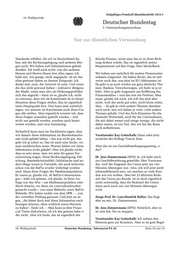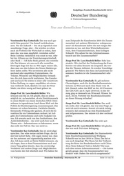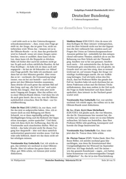 Endgültiges Protokoll (Bandabschrift) 19/14 I 19. Wahlperiode 3. Untersuchungsausschuss Nur zur dienstlichen Verwendung – und steht auch so in den Untersuchungsaus- Matthias Hauer (CDU/CSU): Also da muss ich schusskommentaren –, dass, wenn eine Frage ge- dem Kollegen De Masi intensiv widersprechen, stellt ist, der Zeuge, das ist guter Ton, nicht un- weil der Herr Schmidt nicht nur bei der Opposi- terbrochen wird. Wenn das – können wir ja in tion die Zeit verbraucht hat, sondern auch auf der Obleute-Runde – so ist, dass das gewünscht Fragen der Union an Untersuchungsausschuss- wird in Zukunft, wenn wir einen Zeugen unter- Amnesie gelitten hat – jedenfalls bei den entspre- brechen, wenn er ausführt, dann kann ich das chend relevanten Themen, nämlich als es um die tun, dann kann ich die Stoppuhr so drücken. Befassung von Herr Scholz mit der Thematik Habe ich bisher aber auch bei anderen nicht ge- ging. Insofern war es bei uns genauso. Insofern tan. Es gab auch schon nächtliche Runden, da hat auch mein - - Ich unterstreiche das, da kann der Frau Kiziltepe – da habe ich sie dann auch nett Vorsitzende gern einschreiten, nur ich glaube, im angeguckt – da hat sie 30 Sekunden vor Ablauf Grunde sind wir uns hier einig, dass es erstmal eine Frage gestellt. Das habe ich anerkannt, und irrelevant ist, auf wessen Fragen der Zeuge ver- dann hat sie drei Minuten geredet. Aber wenn nünftige Ausführungen macht, die zur Aufklä- das so ist – nochmals: die Versammlung kriegt rung beitragen. Und ich hatte schon den Ein- immer, was sie bei mir bestellt – und wir das druck, dass bei Professor Röller das gerade der gerne mit den Obleuten bereden zusammen, Fall ist. Insofern habe ich auch durchaus bei an- dann drücke ich auch gerne das nächste Mal auf deren Fraktionen schon mal die kleinen Tricks den Gong, und sag „die Zeit ist um“ und unter- mitbekommen, dass man soeben in der Zeit noch breche den Zeugen. Aber das wäre jetzt nicht die Frage zu Ende formuliert und dann darauf mein Umgang mit Zeugen. Aber das sollten wir spekuliert, dass intensiv in der Nachzeit geant- in einer Obleute-Runde klären. Und dann bin ich wortet wird. da auch gern bereit, das zu tun, was die Obleute mehrheitlich wünschen. Herr De Masi – zur Ge- Vorsitzender Kay Gottschalk: Gut, wer möchte schäftsordnung. nochmal. Ich würde sagen, das sollten wir in der Obleute-Runde sonst diskutieren. Fabio De Masi (DIE LINKE.): Ja, nur dazu, weil Sie das jetzt so aufgeworfen haben. Also, ich er- Dr. h.c. (Univ. Kyiv) Hans Michelbach innere mich an eine Befragung mit Herrn (CDU/CSU): Ich glaube auch, die vier Minuten, Schmidt, wo er dann regelmäßig anfing beim die der Dr. Zimmermann hier moniert hat, die Dreißigjährigen Krieg und die Redezeit der Oppo- werden nur verlängert, wenn wir so eine Debatte sition sozusagen „runter quatschte“. Und dann aufmachen. Ich kann nur feststellen, dass Herr wäre ich dann doch der Auffassung, dass Sie als Professor Röller sehr gradlinig, konsequent und Vorsitzender auch einschreiten dürfen. Weil na- korrekt die Dinge beantwortet hat. türlich – das habe ich jetzt nicht für diesen Vor- gang hier dargestellt – aber weil dann natürlich Vorsitzender Kay Gottschalk: Gut, dann wäre sachorientiert geantwortet werden muss. Und das jetzt aber Dr. Toncar dran, bitte schön. wäre sehr hilfreich, damit wir das dann nicht sel- ber erledigen müssen. Dr. Florian Toncar (FDP): Vielen Dank. Herr Pro- fessor Röller, ich möchte nochmal ganz klar Vorsitzender Kay Gottschalk: Gut, ich würde sa- nachfragen, was denn Ihr Kenntnisstand über gen, das erörtern wir nochmal in einer Obleute- Unregelmäßigkeiten bei Wirecard im September Runde. Aber ich nehme das gerne dann so mit. 2019 war. Ich frage deshalb, weil Sie immer – Okay, gut. Bitte schön, wir können jetzt weiter wie das gesamte Kanzleramt – sagen, „wir hatten diskutieren. keine Kenntnisse von schwerwiegenden Unregel- mäßigkeiten“. So, das ist ja eine Einschränkung 19. Wahlperiode Deutscher Bundestag - Sekretariat PA 30 Seite 20 von 75
