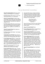 Endgültiges Stenografisches Protokoll 19/46 I 3. Untersuchungsausschuss Nur zur dienstlichen Verwendung Aber das will ich der Opposition nicht vorweg- Zeuge Dr. Bernhard Kotsch: Der BND hat dem nehmen; die haben da so eine schöne Liste. - Untersuchungsausschuss Ende April eine ent- Auch nicht zum Tod von Wirecard-Manager sprechende Information in eingestufter Form zu- Christopher Bauer wahrscheinlich? geliefert. Dazu habe ich nicht mehr Informatio- nen. Zeuge Dr. Bernhard Kotsch: Mir ist hierzu nichts bekannt. Dr. Florian Toncar (FDP): Hm. - Wann hatten Sie denn zuletzt Kontakt zu Herrn Schmidbauer? Matthias Hauer (CDU/CSU): Gut. - Dann wäre ich mit der Runde durch. Aber vielleicht fällt mir Zeuge Dr. Bernhard Kotsch: Ich hatte einmal bis zur zweiten Runde noch was ein. einen Mailkontakt, irgendwann vor drei Jahren. Das war mein einziger und letzter Kontakt mit Vorsitzender Kay Gottschalk: Da werde ich Herrn Schmidbauer. hier ja kalt erwischt. - Dann geht es weiter mit Dr. Toncar für die FDP-Fraktion. Dr. Florian Toncar (FDP): Er hat hier recht viele Dinge berichtet, von denen man doch irgendwo Dr. Florian Toncar (FDP): Vielen Dank. - Darf ich erstaunt war, dass sie einem, ich sage jetzt mal, noch mal konkret nachfragen? Herr Kotsch, wenn ehemaligen Verantwortungsträger bekannt waren, Sie sagen: „Keine Erkenntnisse“, bezieht sich das aber den Diensten heute scheinbar nicht. auf heutiges Wissen, oder bezieht sich das auf, sagen wir mal, allein den Zeitraum bis zur Insol- Zeuge Dr. Bernhard Kotsch: Ich kenne die Aus- venz von Wirecard? Ich stelle einfach die Frage sagen von Herrn Schmidbauer nicht; deswegen noch mal, und zwar mit heutigem Wissen: Gibt kann ich das auch nicht beurteilen. es Erkenntnisse über Verbindungen von Herrn Marsalek zu ausländischen Nachrichtendiensten? Dr. Florian Toncar (FDP): Ja. - Haben Sie denn mal davon erfahren, dass Herr Schmidbauer Zeuge Dr. Bernhard Kotsch: Ich kann nur wie- Herrn Marsalek persönlich getroffen hat? derholen: Mir liegen hierzu keine Erkenntnisse vor. Zeuge Dr. Bernhard Kotsch: Das habe ich aus den Medien erfahren. Dr. Florian Toncar (FDP): Okay. Das hört sich nach heute an. - Ist das dann untersucht worden Dr. Florian Toncar (FDP): Woher haben Sie denn nach der Insolvenz? die Information? Oder auf welche Weise haben Sie erfahren, dass Herr Marsalek offensichtlich Zeuge Dr. Bernhard Kotsch: Also, der Bundes- im Besitz der Formel für einen binären chemi- nachrichtendienst wurde wie alle übrigen Sicher- schen Kampfstoff gewesen sein soll? heitsbehörden nach Auftauchen der Informatio- nen gebeten, alle entsprechenden Informationen Zeuge Dr. Bernhard Kotsch: Es gab Pressemittei- zu überprüfen bzw. die Kanäle, über die die lungen in jüngster Zeit, dass Herr Marsalek über Nachrichtendienste verfügen, zu bedienen. Und diese Information verfügt, wobei ich darauf hin- bislang können wir das nicht bestätigen. weise, dass im Jahr 2018 durch den Fall Skripal viele Informationen über den vermutlichen, ver- Dr. Florian Toncar (FDP): Liegen denn Erkennt- meintlichen Nervenkampfstoff Nowitschok in nisse vor über die privaten Geschäftstätigkeiten den Medien zu finden waren. von Herrn Marsalek in ja durchaus sicherheits- relevanten Ländern wie Syrien oder Libyen? Lie- Dr. Florian Toncar (FDP): Liegen denn den deut- gen dazu dienstliche Erkenntnisse vor? schen Diensten Erkenntnisse vor, ob die Berichte über den Besitz von Herrn Marsalek dieser For- mel glaubhaft sind, ob sie zutreffend sind oder ob das nicht belegbar ist? 19. Wahlperiode Deutscher Bundestag - Stenografischer Dienst Seite 221 von 238