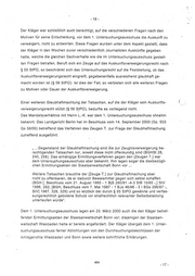 - 14- ordnungsgemäß ~ufgeführt worden seien, so dass der Kläger sich bei einer möglichen bejahenden Antwort auf diese Frage erneut einer weiteren Mitwirkung bei einem Ver- stoß gegen das Parteiengesetz hätte bezichtigen könnE1n. Gleiches gilt für die.am 23. März 2000 gestellte Frage nach einer Überweisung ~on 1,15 Mio. DM von der CDU-Bundestagsfraktion an die BundesparteL Dieser Vorgang ist zwar nicht strafbar. Wiederum hätte eine mögliche Antwort des Klägers auf diese_ Frage aber lauten können, dass dieser Betrag im Rechenschaftsbericht der CDU nicht ordnungsgemäß aufgeführt worden sei, so dass der Kläger ein Indiz einer weiteren . . Untreuehandlung zu Lasten der CDU gegen sich selbst geliefert hätte . Unerheblich ist es, ob die vorgenannten Sachverhalte bereits Gegenstand der Ermitt- lungsverfahren gegen den Kläger waren. Selbst wenn dies nicht der Fall war, hätte der j Kläger sich b_ei den oben genannten möglichen Antworten in einer Weise selbst bela- stet, welche den Anfangsverdacht weiterer Untreuehandlungen begründet hätte und daher zur Eröffnung weüerer Ermittlungsverfahren gegen den Kläger hätte führen ·können. Unbeantwortet bleiben durfte auch die Frage zur Übergabe der 100.000 DM-Spende des Waffenhändlers S. an Herrn Sch. oder Frau B .. Erneut hätte der ~Iäger bei einer Beantwortung der Frage möglicherweise intime Kenntnisse über das Vorgehen von C~U-Funktionären bei der Annahme und Weiterleitung nicht ordnungsgemäß verbuch- ter Spenden offenbaren und dadurch ein weiteres Indiz für seine Verstrickung in die- ses System liefern müssen. Die Verweigerung der Auskunft auf die F~age, ob der Kläger das Mandat von Herrn L..-K. sofort nach dessen Interview mit der FAZ niedergelegt hat, ist, wie der Prozess- bevollmächtigte des Klägers .in der Vernehmung bereits beanstandet hat, bereits . . . schon §53 Abs. 1 Nr. 3 StPO berechtigt. Denn die Frage, ob dieser Umstand zutrifft, läßt sich nicht unterscheiden von derjenigen, ob die FAZ den Kläger insoweit richtig wiedergegeben habe. Für seinen ehemali~en Mandanten kann diese Auskunft ln- dizwirkung haben, so dass der Schutz des § 53 Abs. 1 Nr. 3 StPO insoweit greifen . muss. Ob daneben auch insoweit ein Auskunftsverweigerungsrecht aus § 55 StPO bestand, bedarf daher keiner abschließenden Entscheidung. 402 - 15-