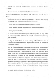 - 7- Haben Sie nach Eingang der Spenden nochmals Kontakt mit den Eheleuten Ehlerding gehabt? JiVie genCLu wurde mit den eingegangenen Geldein weite!: ve1jahren? Der Obmann der SPD-Fraktion, Frank Hofmann, MdB, stellte darüber hinaus die folgenden Fragen: Herr Terlinden, Sie waren seit 1966 Landesgeschäft.~führer in Rheinland-Pfalz, ich glCLube bis 1989. 1982 wurde die Staatsbürgerliche Vereinigung at!fgelöst. Waren Sie in Ihrer Tätigkeit in Mainz mit dieser AI{jlösung befasst? Haben Sie damals Gelder der Staatsbürgerlichen Ve~·einigung übernommen? Wohin gingen diese Gelder? Ich möchte auch noch. im Zusammenhang mit den Fraktionsgeldern eine Frage stellen. Sie sagten uns gegenüber, der Zeitpunkt der Übergabe ist mir aus eigener Erinnerung nicht mehr bekannt. Ich frage Sie deshalb: Haben Sie bei der Anhönt~1g im Konrad-Adenauer-Haus am 3. Februar 2800 eine Aussage ge1nacht, in der Sie sich präzise an den Zeitpunkt der · Geldübergabe erinnern? Nach dem Ergebni.sprotokolldes Ge.sprächs am 3. Februar 2000 im Konrad-Adenauer- Haus sollen Sie folgendes gesagt haben: "Az.!f die Frage nach den Fraktion.sgeldern er- klärte Herr Tei-linden, dass er diese im Januar 1997 erhalten habe. Ob er bereits im De-. zember 1996 mit Herrn Hörster und Herrn Wettengel darüber gesprochen habe, war ihm· nicht erinnerlich. Zur Verwendung der Mittel bestätigte er die Zahlung an Herrn Hennig und mi(diesem darüber gesprochen zu haben, ob diese Zahlungfür Herrn Hennig per- sönlich oder für die Partei bestimmt war. Weiterhin bestätigte er die Zahlung at!f die Ge- haltskonten für Mecklenburg-Vorpommern, die Rechnung von Mannstein und an den Kreisverband Lud!4 igshajen. " Ich sehe darin einen Unterschied, wenn Sie sagen, Sie 1 können sich hier nicht erinnern, aber am 3. Februar 2000 konnten Sie sich noch genau erinnern. Ichfrage Sie deshalb nochmals, ob Sie dabei bleiben 1-vollen? 412