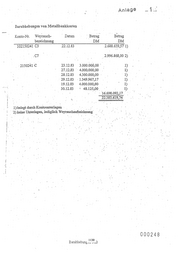 An\age Konten "'\V eyrauch 11 BarabhelJUngen .... ·-Datum Konto 761.477 761.478' 761.479 Summen ., Bem.erkung - DM ·DM DM DM ' - 200.000,00 200.000,00. 11.09.'85. ·1 .. . 500.000,0 0: ·. 18.:08 ..86 51.000,00 551.000,00 " 12.12.'86' .. •' I. 10.'04~87 5oo:ooö;qo·. '• i ~~. 200~{}00,00· .·. 1 25;05.87 i •' .. ·11.12.87. 145.0QO,OO 845.000,00 .. .. - : ' .137~000,00... 137.000,00 '• 30.12.-88.. .. .. .. 4.030.000,00 .. ·, ·' :~.~3.89. ~.140.-000,00' . " .;()6.07.:89 110.000700' .. ' .. .. .. ; .... 265.000~00 21.09.90. . 12.10..90· ... .... .35.00.0~00: 30.Q.OOO,.OO' . .. . : 03;05.9-l : 35.799~5~. CI?E 3'0.000~0.0 ., 07.05'.91 : 85Q·. OQO,OO. ~ . i .-p8.o5~9.r 885.000,00' .- ,. L " 13:05.91 890';000~00 .' i ; 14:05.91';. 970..00.0,00' : ; 15,05.91 920.000,00 985·.ooo,~o 5.535.7_99,52 16.-os.sn ·' ... .. 200.000,00 20.0.000,00: 12.02~-92 26.11.92 7.00;000,00 •' ... 900.000,00 30.12.92. 200.000,00 •' ·. ·600.000~00. 18.03.93 03.05.. 93 800.000,00 200.000,00 1.600.000,00 15.06:93 14.408.799,52 . 000252 1134