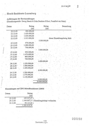 :·:·: Nau-ck-:ß_ankkonto Luxemburg. Auflistungen der Bareinzahlungen · (Einzahlungsstelle:_Georg Hauck & Sohn Bankiers KGaA, Frankfurt'arn Main) Datum Betrag Betrag Bemerkung. 'DM .DM 22.12.83 985.000,00 22;12.83' ·1.650.000,00 22.12.83 1.850.000,00 22.12.83 1.015.000,00 23'.12.83 970.000,00 . .23.12.83 1.280,000,0.0 .· 23.12.83. ·75o.ooo;oo_ . ', 3.000.000,00. I 27.12.83 27.12.83 950.000,00 . ·J.47o.ooö,oo·. ·. ~- 27:.12.'83 .. 860.000,00. . . 27,12.83 · 72Q;OQO~OO . 4.·000;000,0.0 .... .. .28.12.:83 . 1.250. ÖOO;.0.0 · 28.12.83 · 1.600.0.00;00 ·. .2SJ2.83 : 1.450.000,00 . . ' 4300.000,00 . .29.12.83 1 .28,0.000;00 . 29.12.83. 1.57.0.000,00 29.1283 1.150.000~00 . .4.000.000,00 20.800:000;00 .. Einzahlungen auf CDU-Metallbankkonto 228056 Datum Betrag· DM 22.12.83 185.527,57) 29.12.83 1.349 .961; 17 ) Einzahlungsbeleg~ vorhanden 30.12.83 . . . , . - - - - -48.125,00) ____;- 1.583.619,74 000250 1132 Bareinza.l:u u.u e:; c11