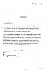 V E R.M ,E R K =====.======= / Betr. : CDU Hessen ·I Prinz Wittge-nstein. hat den .Unterzeichne~ am 16. Januar ·1989 ·angerufen I ! I und mitgete~t •. daß.. er ~on. einef!J Schw.e:Lzer. -Rechtsanwalt telef.qni~·~h i unterrichtet:· . . . worden. sei, daß. ·er im •Rahmen einer. Nachl.aßsa'ehe . eir:~ Ver- mäc:htn~s ·zügu~sten der CDlJ- Hess.eb ~b~uw:Lr::keln :~:abe. · :· P:r-ifiz· .Wittg~rrste::Ln ·-;teilte .weiter mit,· daß . er. dem .. schw€:ize:dscherr Anwalt.· · 9 ;~~d$§t~ii:ch' di~ ··:B:e:ie:Ltscha~t. zur AnhahllJ_e·· ci~s··:ver~äphtrii~s~~; .·da~ in',: ei~em ·größer_eh- ,Gel.dbe1::rag.: be~tehen' soll, . ~;k_l§?=t· :hab~· unter :Cl er .:Vör.au~': . ~et;;u.ng , . ,daß ·'ilas .:P·artei~nsesetz. cteflt. nicht · emtfiegensteht_; u~d mit der · hä~1,1ng.d~~:E?S. P~~kt.7s· wo~..e er. dem -~~:~r.z.eicJ:J.':Ier .. be~uft~a;e~~ ·.de~_. . ·· larigjäh;.i9'·'edne8 Teil· ·der ·rechtliÄhen u~d:.·steu.eri~chen Angeleg~nheiten des. :La~qe~0e~~~·~d~~ · e;r-J:ed:i.ge. · qer(Namen ...dei Unt;e~~·~ichne;r-s :ha:be · ~r · . · ·. -:lern· sch0~izeris.ihen .. Aiiwait, am Tele:fon b~reit~>" :-genamit. • ', ' . ' I ., ' • ,. FrarJkfurt ain. Main, den· 16·. Januar 1989 HW/HB I . . . ~~~~ 1144 000262