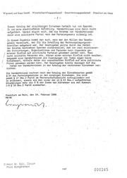 We:lr;mcb und Kapp GmbH Wirtschaftsprüfungsgesellschaft · Steuerberatungsgesellschaft · Frankflirt am Main. - 2- Dieser Katalog der LLn~\.)läs:s.~s-en Einnahmen. handelt nur von Spßnden. Er isf:·~eine abschließende Aöfzählung. Vermächtnisse sind darin nicht aufg.eführt. Daraus ergibt sich, daß die ·Annahme von Vermächtnissen durch eine. politi~che Partei nach dem Parteiengesetz zülässig ist. Zu diesem Ergebnis kommt m~n auch, wenn man den Willen ·des· Gesetz_;_ gebe:rs heranzieht, der für ·die Schaffung d_er RechnuDgslegungsvo.:r- . schrilten maßgebend war. Der Gesetzgeber wollte. durch das Verbot · :der Annahme . bestimmter Sp:ende.n sicherstellen', daß von real existieren- -den Einrichtungen,_ Organisationen und Persorie,n kein irg-endwie .ge"- . · 1 . artet er Einfluß auf poli tis ehe Parteien gesommen _werden k.ann. · Real · . j nicht existente Personen .etc. können eiri.en · solchen Einfluß. nicht· a-usüben, demge~äß si_nd ,·Y.!!::r-'~~c_h~_f]}:~se ....t:lls Zu)Ne~_9.t:Jf!.9_f?_n. v~:n ..-.T<?.c!.~E; .\o,l~§:.~ll. ke?:f!e. . . ... . : Ein-nähmeart, mittels· .der.er ein unerwüns·chter Einfluß auf :eine. politische I P::,rtei genommen· werden .kann. Der ·Gesetzgeber konnt-e dßswegerr äuf .di~ ::nahrrie. von Verrnächtnicssen. in den Katalog-'der· ve:r;-botenen Einnahmen· V~r~ · zi.ch:teh ~ · :· . . . . . Die ·Vermächtnisse r_echnen , nach dem Katalog :der Einnafimearte11 gemäß· § 24 des· Parteiengesetzes zu den -sonstigen . Einnahmen. ·Sie sini:l· · gemäß § :27 Abs. 2 .-PartG im Hechenst::lil3ftsbericht aufzUgliectern .und . zu ·.erläutern, . sow.ei:t sie ·,bei einer de:t. irr· § 24 Abs •. 1 ·aufgef-ührten i;liEidertmgeri· melir als 5. ~ .. der .ßumnie der. Ei.nnabfl)eri al;ls den Nummern l--:-6,;§:·24 .Abs. 2' P..artG ausmachen. · . ..:· . . . . F:Cankfurt am: Main, den 14. Februar :1989· . HW:-HB ... - O:Herrn Or. Egli, Zürich Prinz Wittgenstein 1147 000265