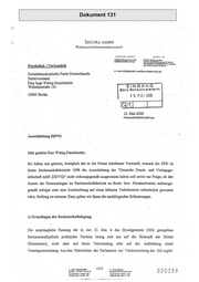 Dokument 131 ~ ..,_• SECURA GMBH WrRTSciiAFTSPRÜFUNGSGESELLSCHAFT DOS S· E l D 0 R f BERliN n-tOMAS 8Ul.A Clp..f<ffll. Wf' .s111 OETLEF OWFS RA P:A!StA. BARBARA BUSCH RA WP Stl lJI..RJCH SCHROOER Dpl«JrL Wl" se ep" OR. ANOREAS OlDENBOURG RA FA13tROe Persönlich I Vertraulich · liWE.W0U:Dtpl.fCIM.WPI8~A- 0-40212 DÜSSEL.OORF, MARTIN-LUTHER·Pl.ATZ 26 Sozialdemokratische Partei Deutschlands Parteivorstand Fraufuge Wettig-Danielmeier ·wilhelmstraße 141 · . I N Ö A f~'G"'.----.1· BOre Sch~.tzm~l~tertn· · 10963-Berlin 1 5. 1•1Al 2000 12. Mai 2000 F:\Datcn\SPD\0050!2biW.doc AusscbüttungDDVG Sehr geehrte Frau Wettig-Danielm.eier, Sie haben uns gebeten,bezüglich des in der Presse erhobe:p.en Vorwurfs, wonach die SPD in ihrem Rechenschaftsbericht 1998 die Ausschüttung der "Deutsche Druck- illld Verlagsge- ·sellschaft mbH (DDVG)" nicht ordnilllgsgemäß ausgewiesen habeil soll sowie zur Frage, ob der Ansatz der Finanzanlagen im Rechenschaftsbericht zu Buch- bzw. Nominalwerten ordnungs- .~einäß _erfolgte oder eine Zuscbreibilllg auf einen höheren Verkehrswert erforderlich gewesen wäre, Stellilllg zu nehmen. Dazu geben wir Timen die nachfolgenden Erläuterungen. 1) Grundlagen der Rechenschaftslegung Die ursprüngliche Fassung der m Art. 21 Abs. 4 des Grundgesetzes (GG) geregelten Rechenschaftspflicht politischer Parteien bezog ·sich nur auf die Herkunft der Mittel (Einnahmen), nicht aber auf deren Verwendung oder auf die Aufstellung emer Vermögensrechnung. Aus den Materialien des Parlaments zur Verabschiedung des GG ergib t 1272 0 • 40>12 D0SSELDORF MARTIN • lUTHER • PI.ATZ Zti TELEFON 0211 f 83 W · 250 D • .0717 BERUN BUO~PESTER STRASSE ·•o 1>. TELEFON 030 I 2S.. 1J - 250 000 28 9 l ELEFAX 0211 /83 99 ·.·133 TELEFAX 030 / 2M 7:! - 133