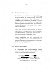 - 117 - 6.3. Komplex Aktenentfernung Die Untersuchung muss sich auf eine mögliche Beteiligung des MDgt Hammes an disziplinarrechtlieh bedeutsamen Vorgängen beschränken. Die Ereignisse im Bundeskanzleramt im Herbst 1998 sind deshalb nur insoweit· . -~- geprüft worden, als ein direkter Zusammenhang mit dem Beamten durch eigenes Handeln - auch als Vorgesetzter- .. oder seine Einbeziehung in das Handeln anderer Personen ( -~ erkennbar geworden ist. Folglich stellt das .Untersuchungsergebnis den Komplex Aktenentfernung im Bundeskanzleramt nicht umfassend dar. • . ' • . t . • • • Einige Fragestellungen sind mangels ·einer Verbindung zu MDgtHammes bewusst offen gelassen worden. Etwaige Abweichungen von den Feststellungen· der Vorermittlungen können daher in dem unterschiedlichen, weil we~entlich beschränkteren Auftrag und damit andersartigen Ermittlungsansätzen begründet sein. 6.3.1 Akten im Leitungsbereich Im Leitungsbereich des Bundeskanzleramtes .(Bundes- kanzler, Chef des Bundeskanzleramtes, Staatsminister) wurden anscheinend keine Sachakten geführt. (Aussage VAe • • • S. 6, VAe..,S. 7, VAe S. 4, VAe S. 2, Untersuchungsakte, Band 4, Trennblatt 19, Aussage . ' - . Bundeskanzler a.D. Dr. Kohl vor dem 185