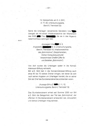 - 121 - Diese Unterlagen sowie das Inhaltsverzeichnis der Gesar:-Jt- . · sammlung von knapp 30 Ordnern sind zum Gegenstand der· Untersuchung gemacht worden. Dabei ist jedoch offen geblieben, und auch nicht zulasten von MDgt Hammes unterstellt worden, ob der Bestand dieser Sammlung im Herbst 1998 identisch war mit dem Inhalt der von Angehörigen des Bundeskanzleramtes ab Sommer 2000 gesichteten Ordner. Eine Beteiligung des Beamten an der Entfernung des "Bohl- ( ... Archivs" in;J Oktober 1998 aus . den Räumen des Bundeskanzlerar:ntes ist nicht nachweisbar. Dass MDgt Hammes der Inhalt dieser Sammlung im Herbst 1998 bewuss~ war .und er Überlegungen über die Zulässigkeit der Entfernung dieser Unterlagen durch seinen Vorgesetzten angestellt hätte, istnicht festgestellt worden. Folglich kann MDgt Hammes auch nicht angelastet werden, der. neuen Bundesregierung nach dem 28. Oktober 1998 nichts über eine mögliche Aktenentfernung berichtet zu haben. (Aussagen BM a.O. Boh/ S. 14, VAe - S. 5, 6, VAe S. 27ff, Angestellte S. 4, VAe . .S. 10, Untersuchungsakte, Bajtf 4, Trennblatt 19) Dass entgegen den Angaben des BM a.D. Sohl in den 60 bis 70 weiteren in der: Konrad-Adenauer-Stiftung vorhan_denen Ordnern Akten mit ?achbezug zum Bundeskanzleramt vor- handen wären, ist ebenfalls nicht festgestellt worden. 189