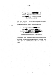 - 124- (Aussage Angestellte . 10, Erklärung MDgt Hammes in Vernehmung Direkto~S. 10, Untersuchungsakte, Band 4, Trennblatt 19) Dass MD~t Hammes in dem Untersuchungszeitraum Sach- akten des Bundeskanzleramtes entfernt oder vernichtet oder . - ·-- dies angeordnet hätte, ist nicht festgestellt worden. (Aussage Botschafter- S. 2, VAe· S. 6, 7, BM a.D.. .S. 12,. MinDiri.e.R. D r . - S . 5, S. 3, MinR~S. 6, V A e - - Untersuchungsakte, Band4, Trennblatt 19) Folglich kann MDgt Hammes auch nicht angelastet werden, . ·.der neuen. Bundesregierung nach dem 28. Oktober 1998 ·nichts über eine mögliche Aktenentfernung berichtet zu haben. 192
