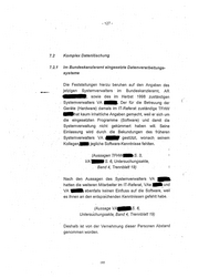 - 127- 7.2 Komplex Datenlöschung · 7.2.1 Im Bundeskanzleramt eingesetzte Datenverarbeitungs- systeme Die Feststellungen hierzu beruhen auf den Angaben des - ".._.. jetzigen Systemverwalters · im Bundeskanzleramt, AR , . sowie des im Herbst · 1998 · zuständigen ( . Systemverwalters VA - Der für· die Betreuung der Geräte (Hardware) damals im IT-Referat zuständige TFHW - h a t kaum inhaltliche Angaben .gemacht, '· weil er sich um . die eingesetzten Programme (Software) und . damit die Systemverwaltung nicht gekümmert haben will. Seine Einlassung wird durch die Bekundungen des früheren Systemverwalters VA . - . gestützt, wonach· seinem Kollegen- jegliche Software-Kenntnisse fehlten. · . (Aussagen TFHWi S. 3, V A - S. 6, Untersuchungsakte, · Band 4, Trennblatt 19) Nach de~ Aussagen des _Systemverwalters · VA . - hatten die weiteren Mitarbeiter im IT-Referat, V A. e -- und . . . V A - ebenfalls keinen Einfluss auf die Software, weil· es ihnen an den entsp[e-chenden Kenntnissen gefehlt habe. · (Aussage V A - S . 6, Untersuchungsakte, Band4, Trennblatt 19) Deshalb ist von .der Vernehmung dieser Personen Abstand genommen·worden. 195