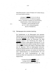 - 129- diese Bekundungen in seiner Aussage und in seinem Bericht zum Noveii-System bestätigt. (Aussage V~S. 2, 5, 6,. 19, 20, 24, . AR Schwendtner S. 10, Untersuchungsakte, Band 4, Trennblatt 19, Bericht zum Nove/1-System, Diszip/inarakten, Ordner Datenlö.schungen, Treimblatt'4, SachverständigerEnnen am 14. 3. 2001, Untersuchungsakte, . Band 5, Trennblatt 21) ( . . 7.2.2 Überlegungen einer zentralen Löschimg c Die ~eststellungen zU der Bekanntgabe· _einer geplanten Datenlöschung in einer Abteilungsleiterbesprechung beruhen _ a.uf den Bek~ndung~n- .des d~mali~en Abteilungsleiters 2, - Botschafter ferner auf Erklärungen des MDgt · Ham·mes, sowoh.l in der VernShmung des Zeug~n · Dr'. ' - als auch in seinereigenen Anhörung vom 12. Juni 2001. Entsprechend seiner letzten Aussage habe ihm MinDir • i.e.R. or:. .im Frcihjahr 2001 erklärt, er habe gegen Mittag des 29. September 1998 die Abteilungsleiter einberufen. Eines der Gesprächsthemen sei die berufliche Zukunft der politischen Beamten gewesen, ein anderes die Vorbereitung einer Datenbereinigung im Bundeskanzleramt bis zum -Amtsantritt der _ neuen Bundesregierung. An dieser· Erörterung hätten die. Gruppenleiter der Leitungsebene nicht I teilgenommen. (Aussage Botschafter; S. 4, 5, Aussage MinR D r . - S. 5, Untersuchungsakte Band 4, Trennblatt 19, 197