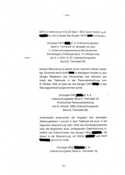 - 131 - MinR - - - beruhen allein auf den ·Aussagen des Zeugen M D g t - (Aussage MDgt-S. 2ff, Untersuchl!ngsakte, Band 4, Trennblatt 19) Die Zeugen MinDir i.e.R. Dr. . . .und ~inR-- haben .,.._.- . aufgrund des Auskunftsverweigerungsrechts gemäß § 55 StPO in Verbindung mit § 25 Satz 1 BDO wegen des bei der Staatsanwaltschaft Bann gegen sie anhängigen Ermittlungs- C_ . verfahrensAngaben zur Sache verweigert .. (Aussagen·MinDiri.e.R. Dr. . . .S. 2, ·M i n R . - S. 3, Untersuchungsakte, Band 4, Trennblatt 19) . Schriftliche UnterlageM über diese Besprechung sind· nicht · vorhanden oder können .· zumindest nicht · aufgefunden werden. Ein detailliertes Eingehen auf den Inhalt der Erörterung ist nicht geboten, da eine Beteiligung von MDgt Hammes daran ( nicht erkennbar ist. - Jedenfalls wird der tn.halt der Aussage des. M D g t - betreffend. die von MinDir i.e:R. Dr.- angestellte Überle- ~ . gLing zu einer flächendeckenden Löschung der im Bundes- kanzleramt vorhandenen Daten durch mehrere Indizien ge- stützt. So hat auch der damalige Personalratsvorsitzende, MinR angegeben, MinDir Dr._ habe ihm gegenüber in einem Telefonatund in einem Gespräch beim Chef des Bundeskanzleramtes bestätigt .. dass die geplante Löschung tatsächlich den gesamten Datenbestand erfassen könnte. 199