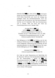 - 136- sitzenden MinR . . vor, dem VLR D r . - unverzüglich danach den Sachverhalt geschildert hatte. Bestätigt wird der Inhalt dieses Gespräches auch durch die Aussage des damaligen Chefs des Bundeskanzleramtes, durch das Schreiben des Personalrats an den Chef des Bundeskanz- leramtes vom 30. Septembe~ 1998, das Antwortschreiben vom 2. Oktober 1998 und durch dem · Inhalt des Personalratsprotokolls vom 6. Oktober 1998. (Aussage BM.a.D. . . S. 4, VLR D r . - S. 3, MinR . . S. 4, Untersuchungsakte Band 4, Trennblatt 19, Schreiben vom 30. 9. 1998, Schreiben vom 2. 10. 1998, Protokoll der Personalratssitzung vom 6. 10. 1998, Untersuchungsakte, Band 6, Trennblatt 29) Eine Befragung von MinR . . zur Prüfung, wer ihm den Auftrag zur Abmahnung von VLR D r . - erteHt hatte, ist ·in der vorliegenden . Untersuchung . nicht notWehdig, . da nicht . . . ' . erkennbar geworden ist, dass MDgt Hammes an der ange- drohten Maßregelung von VLR Dr. _ . beteiligtwaL (Aussage VLR Dr. - S. 3, Untersuchungsakte Band 4, Trennblatt 19) :Der Inhalt der ersten Besprechung am Nachmittag des 29. September 1998 beim Chef des Bundeskanzleramtes, an der der Abteilungsleiter 1, MinDir Dr. . . . der Personalratsvorsitzende MinR ~ und VLR . _ teilnahmen, ist durch die Zeugen BM a. 0 . . . . YLR D r - und MinR- wiedergegeben worden. Er wird auch durch den Inhalt des Protokolls der Personalratssitzung vom 6. Oktober 1998 bestätigt. 204