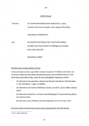 -26- VERTRAG Zwischen der Gesellschaft Etablissement NOBLEPL..ÄC, Vaduz vertreten durch ihren Verwalter, Herrn Roland TRACHSEL nachstehend "NOBLEPLAC" und der SOCIETE NATIONALE ELF AOUITAINE (SNEA) vertreten durch ihren Direktor für Rafftnage 'un~ Vertrieb, Herrn Alain GUILLON nachstehend "SNEA" Betreffend den Vorgang MINOL-LEUNA Vorabwird daran erinnert, dass SNEA mit den Konzernen THYSSEN und D.S.B.K. ein Konsortium bildet (bei dem SNEA die Mehrheit besitzt); das KONSORTIUM ist in Ost- · deutschlandgeschäftlich tätig, wobei die Geschäftstätigkeit Fplgendes umfasst: die Übernahme des gesamten, ehemals als Monopol oetriebenen Vertriebsnetzes (1.100 Tankstellen+ Lager) von MINOL; .: die Übernahme der früheren Raffinerien LEU NA und ZEITZ, die bis 1~96 in Betrieb waren; die Übernahme sämtlicher, mit dieser Geschäftstätigkeit in Zusammenhang stehen- den Pipeline-Netze; den Bau einerneuen Raffinerie mit einer Kapazität von 81 bis 10 Mio. t/Jahr. Angesichts dieser Erläuterungen kommen die Vertragsparteien wie folgt überein: 1 A.d.Ü.: Zahl unleserlich 295