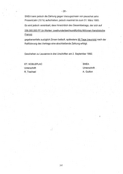 -28- SNEA kann jedoch die Zahlung gegen Verzugszinsen von pauschal zehn ProzenVJahr (10 %) aufschieben, jedoch maximal bis zum 31. März 1993. Es wird jedoch vereinbart, dass hinsichtlich des Gesamtbetrags, der sich auf 256.000.000 FF (in Worten: zweihundertsechsundfünfzig Millionen französische Francs) gegebenenfalls zuzüglich Zinsen beläuft, spätestens 90 Tage (neunzig) nach der Ratifizierung des Vertrags eine abschließende Zahlung erfolgt. Geschehen zu Lausanne in drei Urschriften am 2. September 1992. ET.. NOBLEPLAC SNEA Unterschrift Unterschrift _ R.. Tnachsel . A.Guillon 297