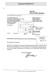 ,-- 1 Vorstehende, mit der Urschrift übereinstimmende Ausfertigung wird hiermit Herrn Dieter HOLZER, vorgenannt, zum Zwecke der Vorlage bei dem Leuna-Minol Untersuchungsauschuss des Deutschen Bundes- tages, zu Händen seines Vorsitzenden, Herr Volker Neumarm, Mitglied des Bundestages, erteilt. Blieskastel, den 25. Februar 2000/D/b N '-·, 304