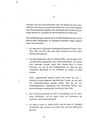 r - 3 - II. Nachdem mich der amtierende Notar über die Bedeutung einer eides- stattlichen Versicherung und darüber belehrt hat, dass eine vorsätzlich oder fahrlässig falsche Abgabe einer eidesstattlichen Versicherung mit Strafe bedroht ist, versichere ich hiermit folgendes an Eides Statt: Alle Verdächtigungen .. wonach ich im Zusammenhang mit dem Leuna- Minoi-Projekt Geldspenden an irgendeine politische Partei gemacht haben soll, sind falsch. 1. Ich habe den im Deutschen Bundestag vertretenen Parteien CDU, CSU, SPD und FDP oder einer oder mehreren von ihnen keine Geldspenden gemacht. 2. Der Altbundeskanzler, Herr Dr. Helmut KOHL, und ich haben noch nie miteinander gesprochen, auch nicht fernmündlich. Aus meiner intim wirkenden Anrede "Lieber Herr Helmut . Kohl" in einem Schreiben von mir an den Bundeskanzler Dr. Kohl auf eine vertrauliche Beziehung zu ihm schließen zu wollen, ist völlig verfehlt. Diese ungewöhnliche Anrede erklärt sich allein aus der cf '-\ Deutschen Lande allgemein überflutenden Freude, von der auch ' ·, ich ·verständlicherweise ergriffen wurde, über die von ihm zustandegebrachte Vereinigung des ~eutschen Volkes nach jahrzehntelanger aufoktroyierter Trennung in zwei Teile. 3.. Der Fraktionsvorsitzende der CDU im Bundestag, Herr Dr. Wolf- gang SCHÄUBLE, und ich haben noch nie miteinander ge- sprochen, auch nicht fernmündlich. 4. Ich habe an Herrn Dr. Helmut KOHL und an Herrn Dr. Wolfgang SCHÄUBLE oder an einen von ihnen noch nie eine Geldspende gemacht. 302