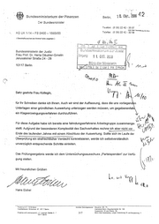 l~ 0 1 52 ttt Bundesministerium der Finanzen Der Bundesminister Berlin, Telefon: (0 30) 22 42- 35 07 oder über Vermrttlung 22 42·0 Telefax: (0 30) 22 42 - 32 58 AG UA 1-14- FB 0400- 1565/00 ( Geschäftszeichen bei Antwor1 bitte angeben ) ;}: r .... L.z> ~er n. ~ Bundesministerin der Justiz Frau Prof. Dr. Herta Däubler-Gmelin '"" lli -.Ltu....j ?- k i z..:. I;-1 0 Jerusalemer Straße 24 - 28 1. ;_ ol A. 10117 Berlin Sehr geehrte Frau Kollegin, · für Ihr Schreiben danke ich Ihnen. Auch wir sind der Auffassung, dass die. uns vorliegenden Unterlagen einer gründlichen Auswertung unterzogen werden müssen, um gegebenenfalls ein Klageerzwingungsverfahren durchzuführen. Für diese Aufgabe habe ich bereits eine fahndungserfahrene Arbeitsgruppe zusammenge- stellt. Aufgrund der besonderen Komplexität des Sachverhaltes rechne ich aber nicht vor Ende des laufenden Jahres mit einem Abschluss der .Auswertung. Sollte sich im Laufe der Überprüfung ein strafrechtlicher Verdacht konkretisieren, werde ich selbstverständlich unverzüglich entsprechende Schritte einleiten. Das Prüfungsergebnis werde ich dem Untersuchungsausschuss ,Parteispenden" zur Verfü- gung stellen. Mit freundlichen Grüßen Hans Eichel ?,.J511n<;::OIHI:' ~ 1C:6 ::~rlt:1 [')!e'lSI1)€'Ö liHI"' ~;l:lii~'Sif •JC"t ;"') Ot<>n<:;r-;,r;: Bann Gr.JurtH~tnr1orte.-r Str 10.3 H;Jur.tg<:"c,lu\1~ ··.;'vdheimstr g-;- 10117 8'.ö'rf1n 322 Erwpt~Q ·.rn:i ~-~~~"'.'."lr~""<ilrd! z. z Le:n.:1rJ~r Str:"tr.fC> 'i: 7 :011-: i1~rlln