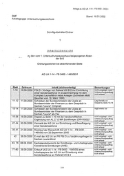Anlage zu AG UA 1-14- FB 0400- 3/02 II BMF Stand: 16.01.2002 Arbeitsgruppe Untersuchungsausschuss Schriftgutbehälter/Ordner 1 Aktenvorlage ·an den 1. Untersuchungsausschuss des Deutschen Bundestages /' \ gemäß Beweisbe~chluss 14/443 vom 13.12.2001 Ordnungszeichen bei aktenführender Stelle: AG UA 1-14- FB 0400-1494/00 ff (Heft) Inhalt:· Einrichtung und Beauftragung der Sondertaskforce Standort der Originalakten: BMF, Arbeitsgruppe Untersuchungsausschuss 1-14 Geheimschutzbedürftigkeit nein Bemerkungen: ~ • 0 • 0 . . . . . . . . . . . . . . . . . . . . . . . . . . . . . . . . . . . .• • 0 • • • • • • • • • • • • 0 •• 0. 0 •••• 0 ••• 0 •• 324