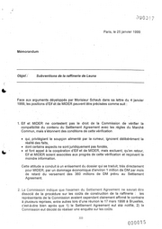 .' .-., ( l ·- 0 ;;;}· v t .; .., ~ / Paris, Je 25 janvier 1999 Memorandum Objet·: Subventions de Ia raffinerie de Leuna ( Face aux arguments deyetoppes par Monsieur Schaub dans sa .lettre du. 4 janvier · 1999, Jes positions d'Eif et de MIDER.peuverit etre precisees comme suit: . . 1. Elf et MIDER ne · contestent pas le droit de Ia Commis.sion de · verifier Ia compatibilite du contenu du Settlement Agreement avec les _rt3gles du Marche Commun, mais s'etonnent des condittons de cette verification. · • qui, privilegiant le soupc;on alimente par Ia rumeur, ignorent deliberement Ia realite des faits, • dont certains aspects ne sont juridiquement pas fondes, • et font appel a Ia coopera.tion d'Eif et de MIDER, mais excluent, qu'en retour, Elf et MI DER soient associees aux progn3s de cette verification et rec;oivent Ia moindre information. Cette attitude a conduit a un enlisement du dossier qui se traduit, tres directement pour MIDER, par un dommage economique d'environ 1 million de DM par mois de retard du versement des 360 millians de DM prevu au Settlement Agreement. 2. La Commission indique que l'examen du Settlement Agreement ne saurait etre dissocie de Ia procedure sur les coüts de construction de Ia raffinerie : les representants de Ia Commission avaient cependant clairement affirme le contraire a plusieurs reprises, entre autres lors d'une reunion le 17 mars 1998 a Bruxelles, c'est-a-dire bien apres que 1) le Settlement Agreement eut ete notifie, 2) Ia Commission eut decide de realiser une enquete sur les coüts. 333 00001,5