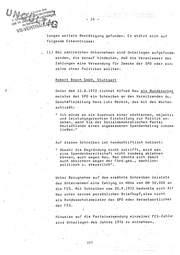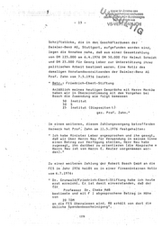 (1) Bei zahlrei•chen Unternehmen sind Unteriagem aufge funde1 . . worden, die darauf ·hinde1..1ten, ciaß. di~ Veranlasser der · Zahlungen ein~ Verw~ndung fUr Z~ecke .der SPO-oder ein- zeln~ ihrer Politiker wollten~ Ro~ert B6sch GmbK, Stuttgart ( Unter dem 11.8.1972 ~icht~t Alfred ~au als Buridesschat meister dar SPD ein Sc~reiben an d~n Vorsitzenden db~ Geschäftsleitung Hans Lutz Merkle,· das mit den Worten schließt: 11 Ich wUrde es als Ausdruck einer nöehternen, objektiv und leistungsgerechten Einstellung zur Politik'.an- sehen, wenn Sie der Sqzialdemokratischen Partei Deutsthlands einen angemessenen Spenderibetrag zukomm ließen." Auf diesem Schreiben ist handscti.ri ftlich notiert: II Obwohl die BegrUnd-ung nicht zutrifft, wi-rd man eine Spendenbereitschaft nicht rooeweg ablehnen können, ~uch wegen Nau~ Man könnte sich damit auch absichern wegen der förd.ges~, sachlich- politisch ~. ·steuerlich 11 • · U~t~r B~zugnahme auf das er~ähnte Sch~ei~en leistete das Unternehmen' eine· Z.ahl~ng in Höhe von f?M 50.000 ah die FE~. Mit Schrei~en vom 20.9.19l2 bedankte sicih Alf Nau ~nt~r seinem persönlichen·Briefkopf,also ~icht als Bundesschatzmeister der SPD oder Veraotwortlicher .. der. FES •. Hinweise auf die Parteiverw.endung einzelner.:_FES-Zahlur sind Unterlagen des Jahres 1976 zu enlneh~en. 1377
