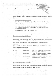 15 Schr~ftstücke, die in de~ Geschäftsiäumen der Daimler-Ben~ AG, Stuttgart, ~ufgefunden worden sind, legen die Annahme ~ahe, d~ß aus einer Gesamtzahlung von DM 125.000 am 6.4.1976 DM 50.000 für Helmut Schmidt und DM 25.000.für Georg Leber zur Unterstützung ihrer politischen A-rbeit bestimmt waren. Eine Notiz des d~maligen Vorstandsvoisitzenden der Daimler-Benz AG Prof. Zahn vom 7.5.1976 lautet! "Betr.: Friedrich-Ebert-Stiftung \ Anläßlich meines heutigen Gesprächs mit Herrn Merkle haben wir in Obereinstimmung mit dem Vorgehen bei Bosch die Zuwendung wie folgt bemessen 50 Institut 50 s 25 Institut (Dispositon L) gez. Prof. Zahn:" Im einem weiteren, diesem Zahlungsvorgang betreffenden Vermer.k hat Prof: Zahn am 11.5 .. 1976 festgehalten: " Ich habe Minister Leber angesprochen und ihm gesagt, daß wir über Herrn Nau für Verwendung in seinem Sinne einen Betrag zur Verfügung stellen, Herr Nau habe zugesagt, ihn darüber zu orientieren (die ·Absprache m \. Herrn Nau ist von Herrn E. Reuter vorgenmmmen wor- den)." Zu einer wei~er~n Zahlung-der Robert Bosch ~mbH a~ die ·FES im Jahr i976 heißt es in einer firmeninteirien Notiz vom 6.7.1976: 11 Dr. Grunwald/Fri~drich-Ebert-Stiftung habe ich heute erst erreicht. Er. ist damit einverstanden, daß der f.ür Professor Dr. Ehmke .MdB · . bestimmte und mit ·F 1 abgesprochene· Betrag· in Höhe ·VOn 20 TOM an die fES .überwiesen wird. RB erhält von dort die Übliche Spendenbescheinigung". •· 1378