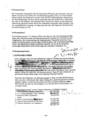 Prüfungsan lass: Der Unterbezirk Wuppertal hatte für die zentrale Erfassung aller Spenden unter an- derem eine Spende in Höhe von 100.000 DM angegeben, die er von Herrn Martin Holzschneider aus Mettmann erhalten habe. Bei der routinemässigen Abstimmung ., der Spendenbeträge mit dem jeweils benannten Spender erklärte Herr Holzschnei- der, dass er die Spende nicht geleistet habe. Warum sein Name mit der Spende in Verbindung gebracht wurde, könne der Unterbezirk Wuppertal näher erläutern. Die- ser ungewöhnliche Vorgang, vor allem aber die Höhe der fraglichen Spende führte zu einer Prüfung vor Ort. Prüfungsablauf: Die Prüfung fand am 12. Oktober 2000 in den Räumen der Unterbezirksgeschäfts- stelle statt. Geprüft wurden die Spendeneinnahmen anhand der Buchführung des Un!~Qezirks, der Kontoauszüge der Stadtsparkasse Wuppertal sowie des zuge- höri§en Schriftwechsels und sonstiger Aufzeichnungen. Der L!nterbezirksgeschäfts- führer Jörg Biesterfeld erteilte bereitwillig Auskünfte, die für die Buchhaltung ( \ zuständige Mitarbeiterin Erika Höhle legte alle verlangten Unterlagen vor. Prüfungsergebnisse: "#i~·~~,,.::;L~l>ii!. "·~ • ß· "' ~v. {' ;~;.n ·~~, - 1. Großspenden-Initiative -.:.~:;:·} q'" Y~. ::: 1('.~~o;;r.c.·:'· ·!e~t"., i{l:!r.ft ;r:;,.• ~ :~·.. ~~.' ..? . ,: ~1· , Nach Aussagen des UB-Geschäftsführers regten im Vorfeld des Kommunalwahl- kam · · · · · sc·~e<·;htal ;- W ergesellschaft mbH in Wülfrath, · · : ·. · · · . ··· ·. Unterbezirk solle eine "bunde~Jlga reife" Kampagne zur Kommunalwahl d·u~chführen. El~i~$ij~f'-S . ~·iJ lif'ime~Ji~R~4-tS~rli.ie~~,ti):ßjä.>J=flr eine solche Kampagne seien zunächst Mittel in Höhe von einer.Mia·: DM benannt worden. Diese fOr den Unterbezirk un- gewöhnlich hohen Mittel sollten durch Spenden finanziert werden. Nachdem die Initiatoren von Spendenzusagen in Höhe von 680.000 DM berich- teten und dem Unterbezirk Ober diesen Betrag eine ,.Spendengarantie" mondlieh gegeben hatten, wurde die Kampagne auf dieses Volumen begrenzt;-dMow 560.000 DM als Etat der Werbeagentur und 120.000 DM für Druckkosten und sonstige Kosten. A!~,~§R~-0-~Q.?~~agen wurden !ol~e-~-~e ~pe.nd~f _L_md_ .B~.~ge ben_~.,a,n~ ·~ 1 ß~rer~·iek;.~Bti~~-eL{Sacl:isen~:.;. ~ -'·· .: ~ ~~ ;.;200 :000 ßM:; , :· ··· .c: ..- •\ 2. C + W Bauträgerges. mbH, Wülfrath l~::.Q't.:iitO.M ...~: :-.;,:. ·::· -::::.:~:-' :· ·:·:. ,, <,<:, .....··,., 3. Eberhard Klatt, Düsse!dorf 50.000 DM sowie .. :t4. Martin Holzsc:hn.eide·~-~~7 100.0'00 DM } 5. Detlef Eckert &·Partner, J:-iannover . 50.000 bM _; 6. Weitere Spenden von insgesami 180.u00 DM ·, . ? 680.000 DM 1803