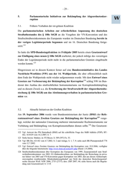 - 29 - 5. Parlamentarische Initiativen zur Bekämpfung der Abgeordnetenkor- ruption 5.1. Frühere Vorhaben der rot-grünen Koalition Die parlamentarischen Arbeiten zur erforderlichen Anpassung des deutschen Straftatbestandes des § 108e StGB an die Vorgaben der VN-Konvention und des Strafrechtsübereinkommens des Europarats wurden im Deutschen Bundestag bereits in der vorigen Legislaturperiode begonnen und im 16. Deutschen Bundestag fortge- 122 setzt. So hatte die SPD-Bundestagsfraktion im Frühjahr 2005 bereits einen Gesetzentwurf zur Einfügung eines neuen § 108e StGB erarbeitet, der jedoch infolge des vorzeitigen Endes der Legislaturperiode nicht mehr in die parlamentarischen Gremien eingebracht 123 werden konnte. Hingewiesen sei in diesem Kontext ferner auf eine Bundesratsinitiative des Landes Nordrhein-Westfalen (NW) aus der 14. Wahlperiode, die aber offensichtlich nach dem Ende der Wahlperiode nicht wieder aufgenommen wurde. Mit dem Entwurf eines 124 Gesetzes zur Verbesserung der Bekämpfung der Korruption schlug NW im Bun- desrat den Ausbau des strafrechtlichen Instrumentariums zur Korruptionsbekämpfung und zu diesem Zweck u.a. die Erweiterung der Strafvorschrift der Abgeordnetenbe- stechung (§ 108e StGB) um das Abstimmungsverhalten in parlamentarischen Gre- mien vor. 5.2. Aktuelle Initiativen der Großen Koalition Am 19. September 2006 wurde vom Bundesministerium der Justiz (BMJ) der Refe- 125 rentenentwurf eines Zweiten Gesetzes zur Bekämpfung der Korruption vorge- legt, welcher der nationalen Umsetzung mehrerer internationaler Rechtsinstrumente zur 126 Verhütung und Bekämpfung von Korruptionsstraftaten dienen sollte. Der Gesetzent- 122 Vgl. Antwort des PSt Hartenbach (BMJ) auf die schriftliche Frage des MdB Addicks (FDP), BT- Drs. 16/4329 vom 16.2.2007, S. 7. 123 Siehe hierzu: Stünker, in: FS Meyer, S. 589 (597) Fn. 55. 124 Vgl. BR-Drs. 631/02 vom 4.7.2002, S. 2 und Anlage, S. 1, 7, 9; siehe auch BR-Plenarprotokoll 778 vom 12.7.2002. 125 Vgl. Entwurf eines Zweiten Gesetzes zur Bekämpfung der Korruption vom 19.9.2006, verfügbar über die folgende Internetseite: http://www.brak.de/seiten/07.php [Stand: 2.9.2008]. 126 Strafrechtsübereinkommen über Korruption des Europarats von 1999, Zusatzprotokoll zum Straf- rechtsübereinkommen von 2003, EU-Rahmenbeschluss zur Bekämpfung der Bestechung im priva- ten Sektor von 2003 und VN-Konvention gegen Korruption von 2003; den aus diesen Antikorrupti- onsvorgaben resultierenden Mindeständerungsbedarf aus Sicht des deutschen Bestechungsstraf- rechts skizziert Wolf, NJW 2006, 2735 (2737); ders. ZRP 2007, 44; siehe hierzu auch die Begrün- dung zum Gesetzentwurf, S. 13 ff.