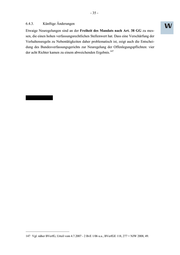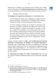 - 35 - 6.4.3. Künftige Änderungen Etwaige Neuregelungen sind an der Freiheit des Mandats nach Art. 38 GG zu mes- sen, die einen hohen verfassungsrechtlichen Stellenwert hat. Dass eine Verschärfung der Verhaltensregeln zu Nebentätigkeiten daher problematisch ist, zeigt auch die Entschei- dung des Bundesverfassungsgerichts zur Neuregelung der Offenlegungspflichten: vier 147 der acht Richter kamen zu einem abweichenden Ergebnis. 147 Vgl. näher BVerfG, Urteil vom 4.7.2007 - 2 BvE 1/06 u.a., BVerfGE 118, 277 = NJW 2008, 49.