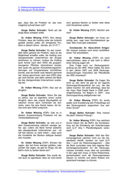 2. Untersuchungsausschuss 58 [8. Sitzung am 04.06.2009] Vorsitzender Dr. Hans-Ulrich Krüger: Dr. Axel Troost (DIE LINKE): - man hat Okay. nur tägliche Berichte über den Todeszustand und Noch-Lebens-Zustand. Zeuge Stefan Schrader: Wer einen län- geren Puffer hat, hat natürlich eine höhere Zeuge Stefan Schrader: Ich war natür- Wahrscheinlichkeit, dass der Markt sich bis lich persönlich - - und, glaube ich, auch kein dahin wieder beruhigt und anspringt. Wenn anderer in der BaFin in der Lage, die feh- er bis dahin nicht anspringt, ist auch er … lende Liquidität aufzufangen oder auszuglei- (akustisch unverständlich) - chen. Vorsitzender Dr. Hans-Ulrich Krüger: Dr. Axel Troost (DIE LINKE): Ja, ich Ist er tot. sage das nur deswegen, weil immer die Be- tonung - - Das hört sich so an, als hätte man Zeuge Stefan Schrader: - auch tot. damit ein Instrument in der Hand, und das ist es ja eigentlich nicht, sondern man sieht nur, Vorsitzender Dr. Hans-Ulrich Krüger: wie schon gesagt, wie schlecht die Situation Okay. - Danke sehr. ist. Ich leite jetzt über, wenn noch Fragen sind, zur Fraktion der Linken für sieben Zeuge Stefan Schrader: Ja klar. Minuten. Herr Dr. Trost. Dr. Axel Troost (DIE LINKE): Zweiter Dr. Axel Troost (DIE LINKE): Danke Punkt. Noch mal zur Frage Wirtschaftsprüfer. schön. - Ich will noch mal zu drei Kom- Haben Sie oder hat die BaFin eigentlich mit plexen - - der Wirtschaftsprüfung, mit den Wirtschafts- Erstens. Sie haben hervorgehoben, dass prüfungsgesellschaften der HRE einen Aus- es was Besonderes ist, dass es die täglichen tausch, einen Kontakt - Liquiditätsberichte gegeben hat. Nur mal die Frage als Volkswirt: Ist das irgendeine Steue- Zeuge Stefan Schrader: Ja. rungsgröße, mit der man irgendwas anfan- gen kann? Wenn die dann schlecht aus- Dr. Axel Troost (DIE LINKE): - und neh- sehen, dann steht die Pleite bevor; handeln men auch das auf, was bei denen an Schwä- kann man doch deswegen trotzdem nicht. chen oder so was gefunden wird, wenn da- rüber berichtet wird? Zeuge Stefan Schrader: Nein, klar; man kriegt - - man weiß diese Liquiditätssitua- Zeuge Stefan Schrader: Na ja, wir krie- tion - - wie die Liquiditätssituation der Gruppe gen - das ist ja - - Pflichtweise sind uns die ist, aber man kann natürlich sehen, wann bei Prüfungsberichte für die Einzelinstitute einzu- Eintritt dieser ganzen Stressannahmen de- reichen, - nen die Luft ausgeht. Das ist klar. Letztend- lich haben Sie als Aufsicht dann die Möglich- Dr. Axel Troost (DIE LINKE): Und Sie keit: Sie können eine Rettungsaktion ansto- diskutieren die auch mit? ßen, oder letztendlich können Sie dann, wenn es denn wirklich so weit sein sollte, Zeuge Stefan Schrader: - irrwitziger- dass Sie in dieses Stadium kommen, bank- weise aber bisher - ich weiß gar nicht, ob es aufsichtliche Maßnahmen ergreifen. Letzt- jetzt ist - nicht der Prüfungsbericht für den endlich wäre das die Anordnung eines Mo- Konzern, den wir allerdings auch wieder auf ratoriums, was Sie allerdings als deutsche freiwilliger Basis erbeten und auch erhalten Aufsicht auch nur in Bezug auf die deutschen haben. Auch insofern hatten wir da kein In- Banken können. formationsdefizit. Dr. Axel Troost (DIE LINKE): Gut, aber Dr. Axel Troost (DIE LINKE): Und Sie im Prinzip heißt das: Für die Krise kann man diskutieren die dann auch mit der Prüfungs- damit nicht wirklich letztlich was machen; - gesellschaft? Zeuge Stefan Schrader: Nein, na klar, Zeuge Stefan Schrader: Ja, klar - - Na, also - - mit der Prüfungsgesellschaft natürlich, aber DEUTSCHER BUNDESTAG - STENOGRAFISCHER DIENST