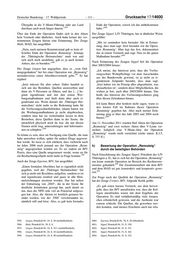 Deutscher Bundestag – 17. Wahlperiode – 111 – Drucksache 17/14600 Übergabe in die V-Mann-Führung oder ans Land Ende der Operation, soweit ich das mitbekommen 595 600 durchaus auch noch länger dauern.“ habe.“ Über das Ende der Operation findet sich in den Akten Der Zeuge Sippel, LfV Thüringen, hat in ähnlicher Weise kein Vermerk oder ähnliches. Auch hatte keiner der ver- ausgeführt: nommenen Zeugen hieran eine Erinnerung. Der Zeuge „Mir ist zumindest kein formaler Akt in Erinne- Huth, MAD, hat ausgeführt: rung, dass man sagt: Jetzt beenden wir die Opera- „Nein, nach meinem Kenntnisstand gab es kein of- tion ,Rennsteig‘. Man legt das fest, dokumentiert fizielles Ende der Operation ,Rennsteig‘. Solange das in einem Vermerk und sagt: Nun ist die ganze 601 der ‚Thüringische Heimatschutz‘ stark war und Maßnahme beendet.“ sich auch noch ausdehnte, gab es ja auch keinen 596 Nach Erinnerung des Zeugen Sippel lief die Operation Anlass, das zu beenden.“ über 2003/2004 hinaus: Der Zeuge Lingen hat angegeben, dass es „vom Ord- „Ich meine, das Interesse jetzt, dass der Verfas- nungsgedanken“ her bei einer Operation wie „Rennsteig“ 597 sungsschutz Wehrpflichtige vor dem Ausscheiden normalerweise einen Abschlussvermerk gebe. Er hat aus der Bundeswehr gewinnt, ist ja nicht zu ir- ergänzt: gendeinem Zeitpunkt beendet, dass man sagt: „Jetzt müssen Sie aber sehen: Dabei handelt es ,Jetzt haben wir im Prinzip alles abgearbeitet, was sich um das Bemühen, Quellen anzuwerben und abzuarbeiten ist‘, sondern diese Möglichkeiten, die dann als V-Personen zu führen, und das […] be- wirken ja fort, auch über 2003/2004 hinaus. Das ginnt irgendwann mal mit den ersten Wer- heißt, das Interesse des Verfassungsschutzes ging bungsmaßnahmen und läuft dann aber auch ir- über diesen Zeitrahmen hinaus. gendwann aus. Wenn damals der ,Thüringer Hei- Ich kann Ihnen aber konkret nicht sagen, wann es matschutz‘ nicht mehr so die Bedeutung hatte für den letzten Fall im Rahmen dieser Operation die Verfassungsschutzbehörden, [dann] hatten wir ,Rennsteig‘ gegeben hat. Aber nach meiner Erin- die Werbungsmaßnahmen ja nicht abgebrochen, nerung ging er über das Jahr 2003 und 2004 noch sondern man hat sie weiterlaufen lassen in dem 602 hinaus.“ Bestreben, diese Quellen dann in der Szene, die tatsächlich physisch noch da war, die nur diesen Am 11. November 2011 wurden fünf Akten der Operation Namen nicht trug, unterzubringen und Informatio- „Rennsteig“ und zwei weitere Akten über V-Leute ver- 598 nen zu schöpfen.“ nichtet; lediglich eine V-Mann-Akte der Operation „Rennsteig“ wurde nicht vernichtet (siehe unten: K.I.5, So könne es sein, dass im Nachgang eine Quelle, die man S. 757 ff.). habe anwerben wollen, später für andere Dinge angewor- ben werde. So lasse es sich erklären, dass vielleicht auch im Jahre 2006 noch jemand aus der Operation „Renn- h) Bewertung der Operation „Rennsteig“ steig“ angesprochen worden sei. Es sei zudem im BfV durch die beteiligten Behörden Praxis, dass eine Quelle umgesteuert werde, wenn sie für ein Beobachtungsobjekt nicht mehr in Frage komme. 599 Nach Einschätzung des Zeugen Sippel, Präsident des LfV Thüringen a. D., hat es sich bei der Operation „Rennsteig“ Auch der Zeuge Egerton, BfV, hat ausgeführt: um keine zentrale Operation im Bereich des Rechtsextre- 603 mismus gehandelt. Die Zusammenarbeit mit dem BfV „Einen formalen Abschluss hat es eigentlich nicht gegeben, weil der ,Thüringer Heimatschutz‘ hat und dem MAD sei gut, konstruktiv und kooperativ gewe- 604 sich ja nicht mit Beschluss aufgelöst, sondern er ist sen. mal irgendwann erodiert und quasi in alle Him- Zur Frage nach der Qualität der Operation „Rennsteig“ melsrichtungen zerstreut worden. Das hat neben hat der Zeuge Cremer, BfV, folgende Kritik geübt: der Enttarnung von ,2045‘, die in der Szene für deutliche Irritationen gesorgt hat, auch damit zu „Es gab einen kurzen Vermerk, aus dem hervor- tun, dass die NPD sehr viel an Potenzial aufgeso- geht, dass das BfV unzufrieden war, dass die Kol- gen hat. Also, die Aktion ist letztlich genauso be- legen unzufrieden waren mit dem Ergebnis der endet worden, wie der ‚THS’ verschwunden ist, Operation. Es sind verhältnismäßig viele Anspra- nämlich still und leise. Also, es gab kein formales chen erforderlich gewesen, und die Ausbeute war extrem schlecht. Die Quellen, die geworben wer- den konnten, sind meines Erachtens auch nur rela- 595) Lingen, Protokoll-Nr. 24, S. 20 (nichtöffentlich). 600) Egerton, Protokoll-Nr. 70, S. 28 (öffentlich). 596) Huth, Protokoll-Nr. 39, S. 8. 601) Sippel, Protokoll-Nr. 51, S. 150. 597) Lingen, Protokoll-Nr. 24, S. 34 f. (nichtöffentlich). 602) Sippel, Protokoll-Nr. 51, S. 151. 598) Lingen, Protokoll-Nr. 24, S. 34 (nichtöffentlich). 603) Sippel, Protokoll-Nr. 51, S. 163. 599) Lingen, Protokoll-Nr. 24, S. 40 (nichtöffentlich). 604) Sippel, Protokoll-Nr. 51, S. 152.