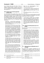 Deutscher Bundestag – 17. Wahlperiode – 267 – Drucksache 17/14600 Tino Brandt bearbeitet, weiterhin forciert und wei- „Am Donnerstag, den 01.08.1996, um 09.30 Uhr, 2301 terhin angeklagt, wo es nur ging.“ wurde in der Staatsanwaltschaft Gera mit Herrn OStA Schultz darüber beraten, ob für den o.a. Auf Nachfrage, ob man ihm nach seiner Einschätzung Fernmeldeanschluss im Hinblick auf die bevorste- versucht habe verstehen zu geben, Brandt sei ein Infor- henden ‚Heßtage‘ beim zuständigen Ermittlungs- mant des LfV Thüringen und er solle bezüglich seiner richter beim Amtsgericht Rudolstadt die Anord- Ermittlungen ein bisschen zurückhaltend, sein, hat der nung zur Überwachung des Fernmeldeverkehrs Zeuge Schultz geantwortet: gem. § 100a StPO beantragt werden kann. „Das könnte sein, ja. Also, er könnte auch das Ge- Herr Schultz erklärte Unterzeichner, dass er vor genteil beabsichtigt haben: Er wollte mir vorma- kurzem vom Landesamt für Verfassungsschutz in chen, dass der Tino Brandt Mitarbeiter des Verfas- Thüringen die Mitteilung erhalten habe, dass Tino sungsschutzes ist, während es sicherlich ein ande- Brandt selber wörtlich äußerte: rer war. Also, es gibt auch andere Interpretations- möglichkeiten. Aber es war vordergründig, glaube ‚Ich weiß, dass gegen mich ein Ermittlungsverfah- ich, schon darauf angelegt, ich solle eher den Tino ren wegen Bildung einer kriminellen Vereinigung Brandt in Ruhe lassen, weil er Mitarbeiter des Ver- geführt wird. Ich bin deshalb sicher, dass meine 2302 fassungsschutzes sei.“ Telefongespräche alle abgehört werden. Aus die- sem Grund verhalte ich mich bis zum Ende des Verfahrens ruhig.‘ bbb) Bedrohung von Polizeibeamten Diese Äußerung von Tino Brandt stamme aus ei- Darüber hinaus gab es am 6. November 1996 ein Ereignis ner nicht gerichtsverwertbaren Maßnahme des in Rudolstadt: Bei einer Fahrzeugkontrolle wurden zwei Landesamtes für Verfassungsschutz. Nachdem es Polizeibeamte aus einer Gruppe von ca. 15 bis 20 Perso- seitens des LfV, den sachbearbeitenden Staats- nen heraus bedroht, die der rechten Szene zuzurechnen schutzstellen der Polizei sowie des LKA keine war. Die Beamten wurden durch Sven R. aufgefordert, die konkreten Hinweise gibt, dass die Gruppierung um Waffen abzulegen und zu kämpfen. Aufgrund der Situati- Tino Brandt während der ‚Heßtage‘ irgendwelche on musste die Fahrzeugkontrolle abgebrochen werden. strafbaren Handlungen plant, hält die Staatsan- Zudem wurden die Beamten durch die Gruppe kurzzeitig waltschaft Gera die Überwachung des Fernmelde- daran gehindert, in ihren Streifenwagen einzusteigen. verkehrs bei Tino Brandt nicht für opportun. Auch 2303 Dieser wurde leicht beschädigt. Auch Tino Brandt war im Hinblick auf die Äußerung des Tino Brandt, als Teil der Gruppe vor Ort anwesend. dass er die Überwachung seiner Telefongespräche Das unter dem Aktenzeichen 113 Js 19774 / 96 bei der bereits vermutet, ist die Überwachung wenig er- Staatsanwaltschaft Gera geführte Ermittlungsverfahren folgversprechend. wurde bzgl. Tino Brandt am 17. April 1997 gemäß § 170 Sollten sich nachträglich weitere Hinweise erge- Abs. 2 StPO eingestellt. Sven R. wurde am 27. Januar hen, wird ein Antrag neuerlich geprüft.“ 2305 1998 durch das Amtsgericht Rudolstadt wegen Landfrie- densbruchs zu einer Freiheitsstrafe von sechs Monaten Ohne dass sich aus den Akten ein Grund für eine Aufgabe verurteilt, deren Vollstreckung zur Bewährung ausgesetzt dieser Zurückhaltung ergibt, beantragte die Staatsanwalt- 2304 wurde. schaft Gera am 6. August 1996 die Überwachung eines von Tino Brandt mutmaßlich genutzten Telefonanschlus- 2306 ses. Diese Maßnahme lief vom 7. August 1996 bis ccc) „THS“-Verfahren zum 15. März 1997. Der Auswertungsvermerk stellte fest, Von November 1995 bis November 1997 ermittelte das dass Tino Brandt und seine Gesprächspartner eine „starke LKA Thüringen im Auftrag der Staatsanwaltschaft Gera Gesprächsdisziplin“ zeigten, da sie damit rechneten, ab- 2307 gegen mutmaßliche Mitglieder des „Thüringer Heimat- gehört zu werden. schutzes“ wegen Bildung einer kriminellen Vereinigung. Der Zeuge Schultz hat zu der angesprochenen Mitteilung Beschuldigter in diesem Verfahren war auch Tino Brandt. des LfV Thüringen über Tino Brandt ausgesagt, er könne Das Verfahren wurde bereits oben näher dargestellt. sich nicht daran erinnern. 2308 Jedoch habe ihn Tino Brandt In diesem Verfahren gingen die Ermittlungsbehörden während einer Sitzungspause einer Hauptverhandlung auf davon aus, dass Tino Brandt Mutmaßungen über bevor- dieses Verfahren wegen Bildung einer kriminellen Verei- stehende Ermittlungsmaßnahmen anstellte. In einem nigung angesprochen. Er habe daraufhin mit der Polizei Vermerk heißt es: darüber gesprochen, woher Tino Brandt Kenntnisse über 2301) Schultz, Protokoll-Nr. 49, S. 5 f. 2305) Vermerk des LKA Thüringen vom 1. August 1996, MAT A 2302) Schultz, Protokoll-Nr. 49, S. 5. TH-2/45, Bl. 430 f. 2303) Vermerk vom 7. November 1996, MAT A TH-9/2i-Saalfeld- 2306) Verfügung vom 6. August 1996, MAT A TH-2/45, Bl. 434 ff. 136, Bl. 374. 2307) Auswertungsvermerk vom 28. Oktober 1997, MAT A TH-2/45, 2304) Übersicht über Justizakten Thüringen, MAT A TH-9/17-22, Bl. 516 ff. Zeilen 6599 und 6601. 2308) Schultz, Protokoll-Nr. 49, S. 53.