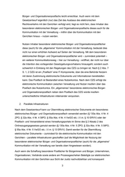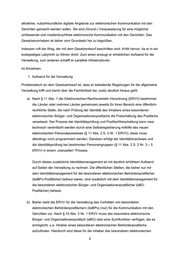 erscheinen mag – als Arrondierung bzw. Ergänzung zum besonderen elektronischen Anwaltspostfach (beA), besonderen elektronischen Notarpostfach, beN) und besonderen elektronischen Behördenpostfach (beBPo) –, werden hierdurch parallele (Doppel-) Infrastrukturen geschaffen, die der Intention des OZG zuwiderlaufen (Kommunikation über interoperable Nutzerkonten, s.o.). Für die elektronische Kommunikation mit den Gerichten wird insofern ein (zusätzlicher) Sonderweg geschaffen bzw. der mit dem beA, beN und beBPO bereits eingeschlagene Weg fortgesetzt. Hinzu kommt, dass für die elektronische Kommunikation über den Postfach- und Versanddienst eines Verwaltungsportals bestimmte Voraussetzungen erfüllt sein müssen (s. § 13 Abs. 1 Nr. 1 – 4, Abs. 2 ERVV). Hierzu zählt u.a. die Bestätigung des Absenders (vertrauenswürdiger Herkunftsnachweis). Nach § 13 Abs. 1 Nr. 4 ERVV muss bei dem Postfach- und Versanddienst des Verwaltungsportals feststellbar sein, dass das elektronische Dokument von dem Nutzer des Postfach- und Versanddienstes versandt wurde. Es handelt sich insoweit um eine zusätzliche Anforderung, die der Postfach- und Versanddienst eines Verwaltungsportals für die elektronische Kommunikation mit den Gerichten gegenüber der Justiz leisten muss. Insofern lässt der Gesetzentwurf zwar die Verwaltungsportale des OZG als zulässige Kommunikations-„provider“ zu, nimmt aber keinerlei Bezug zu den maßgeblichen Umsetzungsanforderungen dieser Portale. Bereits vorhandene interoperable Nutzerkonten (Bürger- und Organisationskonten) sowie deren Postfächer bleiben unerwähnt bzw. müssen aufwändig angepasst werden, um den Anforderungen der Justiz (SAFE, OSCI etc.) zu genügen. Inwieweit bei diesem Sonderweg der Justiz die Verpflichtungen nach eIDAS oder der Single Digital Gateway Verordnung berücksichtigt werden, bleibt ebenfalls offen. Die Gewährleistung der technologischen Kompatibilität wäre somit alleinige Sache der Verwaltungsportale. Weiterhin dürfte es insbesondere gegenüber Bürgerinnen und Bürger nur schwer vermittelbar ein, weshalb es neben dem (allgemeinen) Postfach des Nutzerkontos ein weiteres, besonderes Postfach für die elektronische Kommunikation mit den Gerichten geben soll. Darüber hinaus unterliegen die derzeit verfügbaren und kostenfrei einsetzbaren Clientkomponenten gravierenden organisatorischen und ergonomischen Mängeln, insbesondere wenn es um den Einsatz in größeren Organisationen geht. Dies gilt aber auch bereits dann, wenn es um die „einfache“ Nutzung durch Bürgerinnen und Bürger geht. In dieser Hinsicht ließe sich eher von einem Beitrag zur digitalen Spaltung als von der Förderung gleichwertiger Lebensverhältnisse sprechen, wie es aber der Gesetzentwurf tut. 4