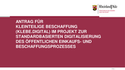 ANTRAG FÜR KLEINTEILIGE BESCHAFFUNG (KLEBE.DIGITAL) IM PROJEKT ZUR STANDARDBASIERTEN DIGITALISIERUNG DES ÖFFENTLICHEN EINKAUFS- UND BESCHAFFUNGSPROZESSES Folie 1