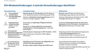 TOP 1: OZG-Umsetzungsfortschritt Limitationen im 1. Umsetzungsweg - Abschluss Einzelvereinbarung, haushälterische Abwicklung und Kapazitäten des (Landes-) IT-DL Risikobewertung der Länder, 10 TF! VORLÄUFIG . Voraussetzung erfüllt? Kategorie Evaluationskriterium Anzahl der UPs, N=90 Finanzielle (1) Für das Umsetzungsprojekt (UP) ist der Projektantrag mit Angabe zu den finanziellen Mittel beim BMI bis Mittel Ende Februar 2021 eingereicht. Einzelvereinbarung ist für das UP zw. Ressort und Land geschlossen und im Zeichnungsprozess. Der Vertragsabschluss erfolgt bis Ende Februar 2021. Die haushälterische Abwicklung - Fremdbewirtschaftung oder Auszahlung - von finanziellen Mitteln ist zw. Ressort und Land etabliert (z.B. Ansprechpartner des Haushaltes ist über Abwicklungsprozess informiert). Fachliche Fachliche Stelle für die Begleitung des UP in Rolle des/der UP-Koordinator:in ist fristgerecht geschaffen, Ausstattung besetzt und mit notwendiger Kapazität ausgestattet - Erfahrungsgemäß je UP: 0,5 VZÄ auf Referent:innen- Ebene. Fachliche Stellen für die Begleitung der Leistungen im UP sind in den Rollen der Leistungsverantwortlichen fristgerecht geschaffen, besetzt und mit notwendiger Kapazität ausgestattet - Erfahrungsgemäß je Leistung: 0,2 VZÄ auf Referent:innen-Ebene. Kapazitäten des Auswahl des (Landes-) IT-DL ist namentlich erfolgt, ggf. vertraglich festgehalten und etwaige (Landes-) IT-DL Rahmenverträge des Landes mit weiteren IT-DL sind geprüft. (7) Kapazitäten des (Landes-) IT-DL sind verbindlich zugesichert und Projektpläne aufeinander abgestimmt. 60-90 30-59 1-29 8 1. Risikobewertung, 10 TF: A&R, B&W, B, E&A, E&H, F&F, R&O, S&Z, U und UFE RT eemen rsan 2. Qualitative Angaben - Ergebnisse synthetisiert in Voraussetzungen "erfüllt" und "nicht erfüllt FR des Inner, für Bau Q f . A b E b . h ent . Vv " f U n d' . h f I " ‚nd Heimat Quelle: Solldaten gemäß Feinplanung (OZG-IP, Stand: 08.01.2021); Risikoeinschätzung McK/ORP anhand der Rückmeldungen der AL-Abfrage