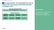 Regionale Kommunikationskanäle Aktueller Status In Kombination mit EfA-Online- Regionale Basisdienste Diensten kann die eigene Infrastruktur ertüchtigt werden.