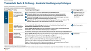 Detailsicht der Themenfelder Themenfeld Recht & Ordnung - Konkrete Handlungsempfehlungen VORLÄUFIG; RÜCKMELDUNGEN AUS THEMENFELD IN KLÄRUNG AKTUALISIERT AUF BASIS DER PRÄSENTATION IN DER AL-RUNDE RESSORTS, 10.03.2021 Zusage!Risiko? Status Land sagt termin- gerechte Umsetzung zu - Projektbarrieren bestehen Handlungsempfehlungen Umsetzungsprojekte Ressort unterstützt das Land bei der Überwindung von Projektbarrieren: & Bußgeldverfahren und (% Finanzielle Mittel: Ressort beschleunigt den Abschluss des Projektantrags und der Ordnungswidrigkeiten Einzelvereinbarung und stellt den Auszahlungsprozess der Finanziellen Mittel sicher Hilfen für Opfer von © Fachliche Ausstattung: Ressort unterstützt das Land durch Bereitstellung von fachlichen Gewalttaten Ressourcen und stellt die zeitnahe Besetzung von Stellen sicher Kapazitäten IT-DL: Ressort unterstützt die Beauftragung und Abstimmung mit dem IT-DL und klärt Möglichkeiten zu der Beauftragung von externen DL durch das Land ade] Land sagt termin- gerechte Umsetzung nicht zu - Projekt- barrieren bestehen Ressort validiert die Rückmeldungen des Landes und bestätigt, dass keine Aussicht auf & Naturkatastrophen termingerechte Umsetzung durch das Land besteht Ressort stimmt mit dem Land ab, ob eine Umsetzung im Land erfolgen kann, ggf. gemeinsame Entscheidung, dass ein alternativer Umsetzungsweg zu verfolgen ist Im Falle einer Umsetzung im Land unterstützt das Ressort bei der Überwindung von Projektbarrieren Land wird das Projekt vsl. nicht termingerecht umsetzen können & Fundsachen Ressort stimmt mit dem Land ab, ob eine Umsetzung im Land erfolgen kann, ggf. gemeinsame Entscheidung, dass ein alternativer Umsetzungsweg zu verfolgen ist Ressort leitet ggf. die Umsetzung über einen alternativen Umsetzungsweg ein: Option 1: Ressort spricht Länder-CIOs von umsetzungsstarken Ländern zur zeitnahen Übernahme des Projekts an und klärt die Übergabe zwischen den Ländern ab Option 2: Ressort übernimmt die Projektverantwortung und -steuerung und setzt das Projekt über den 2. Umsetzungsweg um (Direktbeauftragung über Bund) 1 Politische Zusicherung der termingerechten Umsetzung des Landes 2 Risikobewertung der termingerechten Umsetzung durch BMI PRG-MGMT auf Basis der Angaben des Landes; Bewertung von 7 Evaluationskriterien; Gering = Mind. 6 Kriterien erfüllt; Mittel = Mind. 4 erfüllt; Hoch = Weniger als 4 Kriterien erfüllt FR Bundesministerium $ des Innern, für Bau und Heimat 46