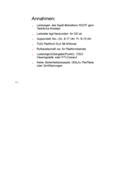FE} Annahmen: - Leistungen des SaaS-Befreibers NICHT gem Taskforce-Konzept — Leitstelle legt Neukunden für OD an _ Suppartzeit Mo.- Do. 8-17 Uhr, Fr. 8-15 Uhr - Txdd Plattform SLA 98,9’Monat — Rufkersitschaft nur für Plattformbetrieb _ Lieistungs)ÜlbergabePfunkt): OSC1 Clearingstelle oder FIT-Connect _ Keine Sicherheitskonzepte (35LA), FenTests oder Zertifinerungen