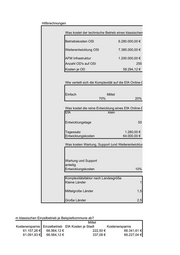 Hilfsrechnungen Was kostet der technische Betrieb eines klassischen Online-Dienstes im Einze Betriebskosten OSI 6.280.000,00 € Weiterentwicklung OSI 7.385.000,00 € AFM Infrastruktur 1.200.000,00 € Anzahl OD's auf OSI 255 Kosten je OD 58.294,12 € Wie verteilt sich die Komplexität auf die EfA Online-Dienste? Einfach Mittel 70% 20% Was kostet die reine Entwicklung eines EfA Online-Dienstes? EfA klein Entwicklungstage 50 Tagessatz 1.280,00 € Entwicklungskosten 64.000,00 € Was kosten Wartung, Support (und Weiterentwicklung) bei EfA Online-Dienste Wartung und Support anteilig Entwicklungskosten 10% Komplexitätsfaktor nach Landesgröße Kleine Länder 1 Mittelgroße Länder 1,5 Große Länder 2,5 ergleich zum klassischen Einzelbetrieb je Beispielkommune ab? Mittel Kostenersparnis Einzelbetrieb EfA Kosten je Stadt Kostenersparnis 61.157,26 € 66.564,12 € 222,50 € 66.341,61 € 61.091,93 € 66.564,12 € 337,08 € 66.227,04 €
