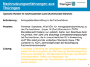 Nachnutzungserfahrungen aus Thüringen Typische Hürden im nachnutzenden Land (Kommunaler Bereich) Anforderung: Antragsdatenübermittlung in die Fachverfahren Problem: Fehlende Standards XFall/XÖV für Antragsdatenübermittlung zu den Fachverfahren, (bspw. 14 (Fach)Standards in DVDV Dienstübersicht bislang nur gelistet), bisher kein Beschluss bzgl. FitConnect; Wer zahlt und beauftragt Schnittstellenanpassungen bei Fachverfahren, die in unterschiedlichen BL in Anwendung sind? Wie stabil sind die vorläufigen Standards (bspw. FIM- Container vs. XÖV), Zeitverzögerungen bei Beauftragung Fachverfahrenshersteller Lösung: Frühzeitige Einbindung der geläufigsten Fachverfahrenshersteller bereits bei der Konzeption der EfA-Leistung, Beschlusslage bzgl. FitConnect herbeiführen, EfA-Mindestanforderungen spezifizieren und fortschreiben, Treffen von Regelungen, wie Softwareanpassungen bei Fachverfahren gemeinsam finanziert werden können 7