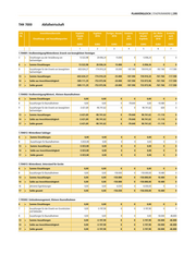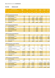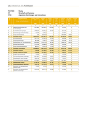 298 | JAHRESABSCHLUSS 2016 | PLANVERGLEICH THH 7200 Märkte 57 Wirtschaft und Tourismus 5730 Allgemeine Einrichtungen und Unternehmen lfd. Teilergebnisrechnung Ergebnis Vorjahr Ergebnis Fortges. Ermächt. Vergleich Zul. Mehr- Ermächt. Nr. 2015 2016 Ansatz aus Ansatz/ aufwand nach Ertrags- und Aufwandsarten 2016 2015 Ergebnis 2016 2017 EURO EURO EURO EURO EURO EURO EURO 1 2 3 4 5 6 7 4 + Öffentlich-rechtliche Entgelte (ohne 1.567.198,79 1.484.760,57 1.475.000 0 -9.760,57 0 0 Investitionsbeiträge) 5 + Privatrechtliche Leistungsentgelte 391.833,04 459.181,35 367.000 0 -92.181,35 0 0 6 + Kostenerstattungen und Kostenumlagen 1.287,40 12.746,21 0 0 -12.746,21 0 0 9 + Sonstige ordentliche Erträge 0,00 286.678,06 0 0 -286.678,06 184.850 0 10 = Ordentliche Erträge 1.960.319,23 2.243.366,19 1.842.000 0 -401.366,19 184.850 0 11 - Personalaufwendungen -742.171,20 -742.491,08 -707.406 0 35.084,68 -47.120 0 12 - Versorgungsaufwendungen -68.269,98 -24.383,52 -66.439 0 -42.055,68 47.120 0 13 - Aufwendungen für Sach- und Dienstleistungen -850.478,93 -1.418.177,83 -991.286 0 426.891,91 -356.380 0 14 - Planmäßige Abschreibungen -171.355,40 -168.986,85 -146.932 0 22.054,85 0 0 17 - Sonstige ordentliche Aufwendungen -96.633,72 -86.736,58 -112.500 0 -25.763,42 0 0 18 = Ordentliche Aufwendungen -1.928.909,23 -2.440.775,86 -2.024.564 0 416.212,34 -356.380 0 19 = Ordentliches Ergebnis 31.410,00 -197.409,67 -182.564 0 14.846,15 -171.530 0 21 = Anteiliges ordentliches Ergebnis 31.410,00 -197.409,67 -182.564 0 14.846,15 -171.530 0 22 + Erträge aus internen Leistungen 1.200,00 4.312,00 0 0 -4.312,00 0 0 23 + THH-interne Gemeinkosten-Entlastungen 1.030.188,25 970.908,84 376.030 0 -594.878,84 0 0 24 - Aufwendungen für interne Leistungen -160.657,99 -199.784,51 -207.050 0 -7.265,23 0 0 25 - THH-interne Gemeinkosten-Belastungen -972.558,25 -929.302,92 -336.547 0 592.756,12 0 0 28 = Kalkulatorisches Ergebnis -101.827,99 -153.866,59 -167.567 0 -13.699,95 0 0 29 = Nettoressourcenbedarf/-überschuss -70.417,99 -351.276,26 -350.130 0 1.146,20 -171.530 0 30 Nachrichtlich: Nicht zahlungswirksame 1.200,00 4.312,00 0 0 -4.312,00 0 0 ordentliche Erträge 31 Nachrichtlich: Nicht zahlungswirksame -332.013,39 -368.771,36 -353.982 0 14.789,62 0 0 ordentliche Aufwendungen