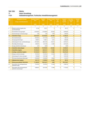 PLANVERGLEICH | STADTKÄMMEREI | 297 THH 7200 Märkte 11 Innere Verwaltung 1124 Gebäudemanagement, Technisches Immobilienmanagement lfd. Teilergebnisrechnung Ergebnis Vorjahr Ergebnis Fortges. Ansatz Ermächt. Vergleich Zul. Mehr- Ermächt. Nr. 2015 2016 2016 aus Ansatz/ aufwand nach Ertrags- und Aufwandsarten 2015 Ergebnis 2016 2017 EURO EURO EURO EURO EURO EURO EURO 1 2 3 4 5 6 7 4 + Öffentlich-rechtliche Entgelte (ohne 417,44 357,77 0 0 -357,77 0 0 Investitionsbeiträge) 5 + Privatrechtliche Leistungsentgelte 255.959,03 241.908,49 205.000 0 -36.908,49 0 0 6 + Kostenerstattungen und Kostenumlagen 0,00 0,00 2.000 0 2.000,00 0 0 10 = Ordentliche Erträge 256.376,47 242.266,26 207.000 0 -35.266,26 0 0 11 - Personalaufwendungen -44.360,42 -47.141,05 -45.154 0 1.987,45 0 0 12 - Versorgungsaufwendungen -4.080,57 -1.548,12 -4.241 0 -2.692,68 0 0 13 - Aufwendungen für Sach- und Dienstleistungen -97.576,97 -98.721,94 -143.514 0 -44.792,14 0 0 14 - Planmäßige Abschreibungen -8.904,91 -8.141,95 -31.894 0 -23.752,05 0 0 17 - Sonstige ordentliche Aufwendungen -0,07 -39,99 0 0 39,99 0 0 18 = Ordentliche Aufwendungen -154.922,94 -155.593,05 -224.802 0 -69.209,43 0 0 19 = Ordentliches Ergebnis 101.453,53 86.673,21 -17.802 0 -104.475,69 0 0 21 = Anteiliges ordentliches Ergebnis 101.453,53 86.673,21 -17.802 0 -104.475,69 0 0 22 + Erträge aus internen Leistungen 75.187,32 75.187,32 61.340 0 -13.847,32 0 0 24 - Aufwendungen für interne Leistungen -7.945,60 -12.071,86 -50 0 12.021,82 0 0 25 - THH-interne Gemeinkosten-Belastungen -57.630,00 -41.605,92 -39.483 0 2.122,72 0 0 28 = Kalkulatorisches Ergebnis 9.611,72 21.509,54 21.807 0 297,22 0 0 29 = Nettoressourcenbedarf/-überschuss 111.065,25 108.182,75 4.004 0 -104.178,47 0 0 30 Nachrichtlich: Nicht zahlungswirksame 75.187,32 75.187,32 61.340 0 -13.847,32 0 0 ordentliche Erträge 31 Nachrichtlich: Nicht zahlungswirksame -16.850,51 -20.213,81 -31.944 0 -11.730,23 0 0 ordentliche Aufwendungen
