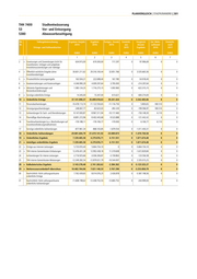 PLANVERGLEICH | STADTKÄMMEREI | 301 THH 7400 Stadtentwässerung 53 Ver- und Entsorgung 5380 Abwasserbeseitigung lfd. Teilergebnisrechnung Ergebnis Vorjahr Ergebnis Fortges. Ansatz Ermächt. Vergleich Zul. Mehr- Ermächt. Nr. 2015 2016 2016 aus Ansatz/ aufwand nach Ertrags- und Aufwandsarten 2015 Ergebnis 2016 2017 EURO EURO EURO EURO EURO EURO EURO 1 2 3 4 5 6 7 2 + Zuweisungen und Zuwendungen (nicht für 634.915,00 619.300,00 717.297 0 97.996,69 0 0 Investitionen), Umlagen und aufgelöste Investitionszuwendungen und -beiträge 4 + Öffentlich-rechtliche Entgelte (ohne 30.601.211,62 29.316.100,44 32.851.766 0 3.535.665,56 0 0 Investitionsbeiträge) 5 + Privatrechtliche Leistungsentgelte 163.504,21 222.698,40 167.780 0 -54.918,40 0 0 6 + Kostenerstattungen und Kostenumlagen 4.346.990,29 4.009.297,64 3.795.000 0 -214.297,64 0 0 8 + Aktivierte Eigenleistungen und 1.380.124,25 1.716.275,15 1.093.960 0 -622.315,15 0 0 Bestandsveränderungen 9 + Sonstige ordentliche Erträge 14.345,00 15.347,00 615.621 0 600.274,00 0 0 10 = Ordentliche Erträge 37.141.090,37 35.899.018,63 39.241.424 0 3.342.405,06 0 0 11 - Personalaufwendungen -10.478.113,74 -11.122.550,65 -11.116.750 0 5.800,65 -180.510 0 12 - Versorgungsaufwendungen -248.067,77 -82.623,03 -282.220 0 -199.596,97 180.510 0 13 - Aufwendungen für Sach- und Dienstleistungen -9.147.000,87 -9.967.311,94 -10.117.460 0 -150.148,30 6.110 0 14 - Planmäßige Abschreibungen -8.891.272,96 -9.402.445,68 -9.523.888 0 -121.442,42 0 0 16 - Transferaufwendungen (u.a. Abschreibungen auf -159.188,11 -176.106,77 -170.000 0 6.106,77 -6.110 0 Investitionsförderungsmaßnahmen) 17 - Sonstige ordentliche Aufwendungen -877.961,34 -868.103,85 -1.879.554 0 -1.011.450,31 0 0 18 = Ordentliche Aufwendungen -29.801.604,79 -31.619.141,92 -33.089.873 0 -1.470.730,58 0 0 19 = Ordentliches Ergebnis 7.339.485,58 4.279.876,71 6.151.551 0 1.871.674,48 0 0 21 = Anteiliges ordentliches Ergebnis 7.339.485,58 4.279.876,71 6.151.551 0 1.871.674,48 0 0 22 + Erträge aus internen Leistungen 5.733.055,40 5.664.154,10 0 0 -5.664.154,10 0 0 23 + THH-interne Gemeinkosten-Entlastungen 12.476.431,28 12.992.438,18 11.319.608 0 -1.672.829,84 0 0 24 - Aufwendungen für interne Leistungen -2.716.925,66 -3.036.306,87 -3.159.863 0 -123.556,58 0 0 25 - THH-interne Gemeinkosten-Belastungen -12.349.282,54 -12.879.021,79 -10.544.007 0 2.335.015,25 0 0 28 = Kalkulatorisches Ergebnis 3.143.278,48 2.741.263,62 -2.384.262 0 -5.125.525,27 0 0 29 = Nettoressourcenbedarf/-überschuss 10.482.764,06 7.021.140,33 3.767.290 0 -3.253.850,79 0 0 30 Nachrichtlich: Nicht zahlungswirksame 7.762.439,65 8.014.076,25 2.426.878 0 -5.587.198,56 0 0 ordentliche Erträge 31 Nachrichtlich: Nicht zahlungswirksame -11.608.198,62 -12.438.752,55 -12.683.752 0 -244.999,00 0 0 ordentliche Aufwendungen