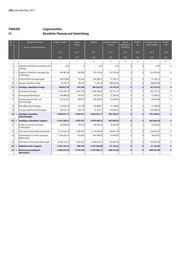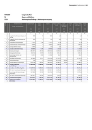 268 | Jahresabschluss 2017 THH6200 Liegenschaften 51 Räumliche Planung und Entwicklung lfd. Teilergebnisrechnung Ergebnis Vorjahr Fortges. Ergebnis Vergleich Ergebnis/ Ergänz. Ermächt. Verfügbare Mittel Ermächt. Nr. Ansatz Ansatz Festlegung im aus abzgl. Ergebnis nach Ertrags- und Aufwandsarten HH-Vollzug 2016 2017 2017 2017 2017 2016 2017 2018 EUR EUR EUR EUR EUR EUR EUR EUR 1 2 3 4 5 6 7 8 3 + Aufgelöste Investitionszuwendungen und 0,00 0 6,32 6,32 0 0 -6,32 0 -beiträge 5 + Entgelte für öffentliche Leistungen oder 390.467,69 365.000 579.103,64 214.103,64 0 0 -214.103,64 0 Einrichtungen 6 + Privatrechtliche Leistungsentgelte 450.018,84 355.050 392.288,15 37.238,15 0 0 -37.238,15 0 10 + Sonstige ordentliche Erträge 10.370,77 199.310 11.281,42 -188.028,58 0 0 188.028,58 0 11 = Anteilige ordentliche Erträge 850.857,30 919.360 982.679,53 63.319,53 0 0 -63.319,53 0 12 - Personalaufwendungen -4.318.765,22 -4.567.158 -4.299.406,87 267.751,37 0 0 -267.751,37 0 13 - Versorgungsaufwendungen -140.889,40 -163.367 -140.576,75 22.789,95 0 0 -22.789,95 0 14 - Aufwendungen für Sach- und -337.537,65 -438.414 -384.382,97 54.030,99 0 0 -54.030,99 0 Dienstleistungen 15 - Planmäßige Abschreibungen -127.834,20 -137.799 -164.988,07 -27.188,69 0 0 27.188,69 0 18 - Sonstige ordentliche Aufwendungen -169.031,30 -548.179 -73.273,11 474.906,05 0 0 -474.906,05 0 19 = Anteilige ordentliche -5.094.057,77 -5.854.917 -5.062.627,77 792.289,67 0 0 -792.289,67 0 Aufwendungen 20 = Anteiliges ordentliches Ergebnis -4.243.200,47 -4.935.557 -4.079.948,24 855.609,20 0 0 -855.609,20 0 21 + Erträge aus internen Leistungen 162.658,05 144.570 189.590,05 45.020,05 0 0 -45.020,05 0 (Entlastungen) 22 + THH-interne Gemeinkosten-Entlastungen 6.132.544,18 6.490.907 6.134.076,06 -356.831,02 0 0 356.831,02 0 23 - Aufwendungen für interne Leistungen -1.058.201,07 -823.962 -902.268,26 -78.305,87 0 0 78.305,87 0 (Belastungen) 24 - THH-interne Gemeinkosten-Belastungen -6.290.153,32 -6.792.301 -6.449.318,74 342.982,58 0 0 -342.982,58 0 26 = Kalkulatorisches Ergebnis -1.053.152,16 -980.787 -1.027.920,89 -47.134,26 0 0 47.134,26 0 27 = Nettoressourcenbedarf/- -5.296.352,63 -5.916.344 -5.107.869,13 808.474,94 0 0 -808.474,94 0 überschüsse