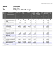 Planvergleich | Stadtkämmerei | 245 THH6200 Liegenschaften 31 Soziale Hilfen 3180 Sonstige soziale Hilfen und Leistungen lfd. Teilergebnisrechnung Ergebnis Vorjahr Fortges. Ergebnis Vergleich Ergänz. Ermächt. Verfügbare Mittel Ermächt. Nr. Ansatz Ergebnis/ Festlegung im aus abzgl. Ergebnis nach Ertrags- und Aufwandsarten Ansatz HH-Vollzug 2017 2018 2018 2018 2018 2017 2018 2019 EUR EUR EUR EUR EUR EUR EUR EUR 1 2 3 4 5 6 7 8 3 + Aufgelöste Investitionszuwendungen und 0,00 0,75 0,00 -0,75 0 0 0,75 0 -beiträge 6 + Privatrechtliche Leistungsentgelte 225,91 0,00 0,00 0,00 0 0 0,00 0 10 + Sonstige ordentliche Erträge 1.038,87 0,00 0,00 0,00 0 0 0,00 0 11 = Anteilige ordentliche Erträge 1.264,78 0,75 0,00 -0,75 0 0 0,75 0 12 - Personalaufwendungen -662.641,43 -651.648,62 -678.883,77 -27.235,15 0 0 27.235,15 0 13 - Versorgungsaufwendungen -35.221,84 -33.919,84 -136,20 33.783,64 0 0 -33.783,64 0 14 - Aufwendungen für Sach- und -35.915,16 -38.649,68 -34.488,03 4.161,65 0 0 -4.161,65 0 Dienstleistungen 15 - Planmäßige Abschreibungen -7.609,14 -8.145,16 -7.267,93 877,23 0 0 -877,23 0 16 - Zinsen und ähnliche Aufwendungen 0,00 0,00 -19,76 -19,76 0 0 19,76 0 18 - Sonstige ordentliche Aufwendungen -5.409,86 -8.022,32 -6.918,30 1.104,02 0 0 -1.104,02 0 19 = Anteilige ordentliche -746.797,43 -740.385,62 -727.713,99 12.671,63 0 0 -12.671,63 0 Aufwendungen 20 = Anteiliges ordentliches Ergebnis -745.532,65 -740.384,87 -727.713,99 12.670,88 0 0 -12.670,88 0 22 + THH-interne Gemeinkosten-Entlastungen 943.130,17 936.096,22 935.966,31 -129,91 0 0 129,91 0 23 - Aufwendungen für interne Leistungen -170.887,14 -135.372,61 -182.811,74 -47.439,13 0 0 47.439,13 0 (Belastungen) 24 - THH-interne Gemeinkosten-Belastungen -1.107.183,27 -1.114.635,98 -1.106.531,60 8.104,38 0 0 -8.104,38 0 26 = Kalkulatorisches Ergebnis -334.940,24 -313.912,37 -353.377,03 -39.464,66 0 0 39.464,66 0 27 = Nettoressourcenbedarf/- -1.080.472,89 -1.054.297,24 -1.081.091,02 -26.793,78 0 0 26.793,78 0 überschüsse