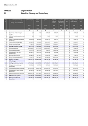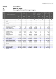 246 | Jahresabschluss 2018 THH6200 Liegenschaften 51 Räumliche Planung und Entwicklung lfd. Teilergebnisrechnung Ergebnis Vorjahr Fortges. Ergebnis Vergleich Ergänz. Ermächt. Verfügbare Mittel Ermächt. Nr. Ansatz Ergebnis/ Festlegung im aus abzgl. Ergebnis nach Ertrags- und Aufwandsarten Ansatz HH-Vollzug 2017 2018 2018 2018 2018 2017 2018 2019 EUR EUR EUR EUR EUR EUR EUR EUR 1 2 3 4 5 6 7 8 2 + Zuweisungen und Zuwendungen, 0,00 0,00 30.000,00 30.000,00 0 0 -30.000,00 0 Umlagen 3 + Aufgelöste Investitionszuwendungen und 6,32 0,00 93,05 93,05 0 0 -93,05 0 -beiträge 5 + Entgelte für öffentliche Leistungen oder 579.103,64 365.000,00 375.007,72 10.007,72 0 0 -10.007,72 0 Einrichtungen 6 + Privatrechtliche Leistungsentgelte 392.288,15 355.250,00 435.794,91 80.544,91 0 0 -80.544,91 0 10 + Sonstige ordentliche Erträge 11.281,42 1.000.000,00 1.733.429,31 733.429,31 0 0 -733.429,31 0 11 = Anteilige ordentliche Erträge 982.679,53 1.720.250,00 2.574.324,99 854.074,99 0 0 -854.074,99 0 12 - Personalaufwendungen -4.299.406,87 -4.717.201,50 -4.646.818,67 70.382,83 0 0 -70.382,83 0 13 - Versorgungsaufwendungen -140.576,75 -169.213,00 -2.400,72 166.812,28 0 0 -166.812,28 0 14 - Aufwendungen für Sach- und -384.382,97 -438.413,96 -363.644,98 74.768,98 0 0 -74.768,98 0 Dienstleistungen 15 - Planmäßige Abschreibungen -164.988,07 -161.250,23 -173.054,40 -11.804,17 0 0 11.804,17 0 18 - Sonstige ordentliche Aufwendungen -73.273,11 -548.179,16 -101.058,33 447.120,83 0 0 -447.120,83 0 19 = Anteilige ordentliche -5.062.627,77 -6.034.257,85 -5.286.977,10 747.280,75 0 0 -747.280,75 0 Aufwendungen 20 = Anteiliges ordentliches Ergebnis -4.079.948,24 -4.314.007,85 -2.712.652,11 1.601.355,74 0 0 -1.601.355,74 0 21 + Erträge aus internen Leistungen 189.590,05 144.570,00 32.194,14 -112.375,86 0 0 112.375,86 0 (Entlastungen) 22 + THH-interne Gemeinkosten-Entlastungen 6.134.076,06 6.699.877,68 6.374.322,13 -325.555,55 0 0 325.555,55 0 23 - Aufwendungen für interne Leistungen -902.268,26 -840.785,51 -995.565,18 -154.779,67 0 0 154.779,67 0 (Belastungen) 24 - THH-interne Gemeinkosten-Belastungen -6.449.318,74 -7.017.235,36 -6.632.144,71 385.090,65 0 0 -385.090,65 0 26 = Kalkulatorisches Ergebnis -1.027.920,89 -1.013.573,19 -1.221.193,62 -207.620,43 0 0 207.620,43 0 27 = Nettoressourcenbedarf/- -5.107.869,13 -5.327.581,04 -3.933.845,73 1.393.735,31 0 0 -1.393.735,31 0 überschüsse