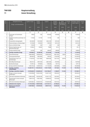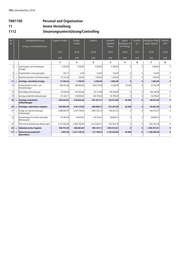 150 | Jahresabschluss 2018 THH1000 Hauptverwaltung 11 Innere Verwaltung lfd. Teilergebnisrechnung Ergebnis Vorjahr Fortges. Ergebnis Vergleich Ergänz. Ermächt. Verfügbare Mittel Ermächt. Nr. Ansatz Ergebnis/ Festlegung im aus abzgl. Ergebnis nach Ertrags- und Aufwandsarten Ansatz HH-Vollzug 2017 2018 2018 2018 2018 2017 2018 2019 EUR EUR EUR EUR EUR EUR EUR EUR 1 2 3 4 5 6 7 8 2 + Zuweisungen und Zuwendungen, 800,00 0,00 10.000,00 10.000,00 0 0 -10.000,00 0 Umlagen 3 + Aufgelöste Investitionszuwendungen und 1.516,00 1.517,00 1.517,00 0,00 0 0 0,00 0 -beiträge 6 + Privatrechtliche Leistungsentgelte 224.320,59 181.470,00 236.231,05 54.761,05 0 0 -54.761,05 0 7 + Kostenerstattungen und Kostenumlagen 53.744,06 72.000,00 17.987,65 -54.012,35 0 0 54.012,35 0 8 + Zinsen und ähnliche Erträge 1.554,50 0,00 0,00 0,00 0 0 0,00 0 9 + Aktivierte Eigenleistungen und 19.558,37 1.000,00 798,88 -201,12 0 0 201,12 0 Bestandsveränderungen 10 + Sonstige ordentliche Erträge 6.372,81 0,00 6.800,00 6.800,00 0 0 -6.800,00 0 11 = Anteilige ordentliche Erträge 307.866,33 255.987,00 273.334,58 17.347,58 0 0 -17.347,58 0 12 - Personalaufwendungen -8.689.448,65 -9.083.854,00 -9.948.030,61 -864.176,61 -89.250 0 774.926,61 0 13 - Versorgungsaufwendungen -208.500,29 -280.200,00 -4.832,91 275.367,09 0 0 -275.367,09 0 14 - Aufwendungen für Sach- und -1.115.873,97 -1.322.778,60 -969.003,90 353.774,70 239.740 0 -114.034,70 0 Dienstleistungen 15 - Planmäßige Abschreibungen -240.331,72 -309.575,00 -386.254,64 -76.679,64 0 0 76.679,64 0 17 - Transferaufwendungen -75.797,15 -79.780,00 -75.802,85 3.977,15 0 0 -3.977,15 0 18 - Sonstige ordentliche Aufwendungen -3.956.755,33 -4.385.854,92 -4.117.265,94 268.588,98 -35.260 0 -303.848,98 0 19 = Anteilige ordentliche -14.286.707,11 -15.462.042,52 -15.501.190,85 -39.148,33 115.230 0 154.378,33 0 Aufwendungen 20 = Anteiliges ordentliches Ergebnis -13.978.840,78 -15.206.055,52 -15.227.856,27 -21.800,75 115.230 0 137.030,75 0 21 + Erträge aus internen Leistungen 14.182.895,84 15.045.410,00 15.404.714,52 359.304,52 0 0 -359.304,52 0 (Entlastungen) 22 + THH-interne Gemeinkosten-Entlastungen 12.806.352,84 13.823.837,84 14.344.177,25 520.339,41 0 0 -520.339,41 0 23 - Aufwendungen für interne Leistungen -1.804.912,45 -1.906.379,82 -2.008.684,18 -102.304,36 0 0 102.304,36 0 (Belastungen) 24 - THH-interne Gemeinkosten-Belastungen -13.874.082,27 -15.063.397,16 -15.592.870,48 -529.473,32 0 0 529.473,32 0 26 = Kalkulatorisches Ergebnis 11.310.253,96 11.899.470,86 12.147.337,11 247.866,25 0 0 -247.866,25 0 27 = Nettoressourcenbedarf/- -2.668.586,82 -3.306.584,66 -3.080.519,16 226.065,50 115.230 0 -110.835,50 0 überschüsse