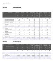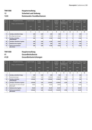 Planvergleich | Stadtkämmerei | 151 THH1000 Hauptverwaltung 12 Sicherheit und Ordnung 1224 Kommunales Grundbuchwesen lfd. Teilergebnisrechnung Ergebnis Vorjahr Fortges. Ergebnis Vergleich Ergänz. Ermächt. Verfügbare Mittel Ermächt. Nr. Ansatz Ergebnis/ Festlegung im aus abzgl. Ergebnis nach Ertrags- und Aufwandsarten Ansatz HH-Vollzug 2017 2018 2018 2018 2018 2017 2018 2019 EUR EUR EUR EUR EUR EUR EUR EUR 1 2 3 4 5 6 7 8 11 = Anteilige ordentliche Erträge 0,00 0,00 0,00 0,00 0 0 0,00 0 15 - Planmäßige Abschreibungen 0,00 0,00 -67,00 -67,00 0 0 67,00 0 19 = Anteilige ordentliche 0,00 0,00 -67,00 -67,00 0 0 67,00 0 Aufwendungen 20 = Anteiliges ordentliches Ergebnis 0,00 0,00 -67,00 -67,00 0 0 67,00 0 26 = Kalkulatorisches Ergebnis 0,00 0,00 0,00 0,00 0 0 0,00 0 27 = Nettoressourcenbedarf/- 0,00 0,00 -67,00 -67,00 0 0 67,00 0 überschüsse THH1000 Hauptverwaltung 41 Gesundheitsdienste 4120 Gesundheitseinrichtungen lfd. Teilergebnisrechnung Ergebnis Vorjahr Fortges. Ergebnis Vergleich Ergänz. Ermächt. Verfügbare Mittel Ermächt. Nr. Ansatz Ergebnis/ Festlegung im aus abzgl. Ergebnis nach Ertrags- und Aufwandsarten Ansatz HH-Vollzug 2017 2018 2018 2018 2018 2017 2018 2019 EUR EUR EUR EUR EUR EUR EUR EUR 1 2 3 4 5 6 7 8 11 = Anteilige ordentliche Erträge 0,00 0,00 0,00 0,00 0 0 0,00 0 17 - Transferaufwendungen -4.590,00 0,00 -4.590,00 -4.590,00 -4.590 0 0,00 0 19 = Anteilige ordentliche -4.590,00 0,00 -4.590,00 -4.590,00 -4.590 0 0,00 0 Aufwendungen 20 = Anteiliges ordentliches Ergebnis -4.590,00 0,00 -4.590,00 -4.590,00 -4.590 0 0,00 0 23 - Aufwendungen für interne Leistungen -358,40 0,00 -442,99 -442,99 0 0 442,99 0 (Belastungen) 26 = Kalkulatorisches Ergebnis -358,40 0,00 -442,99 -442,99 0 0 442,99 0 27 = Nettoressourcenbedarf/- -4.948,40 0,00 -5.032,99 -5.032,99 -4.590 0 442,99 0 überschüsse